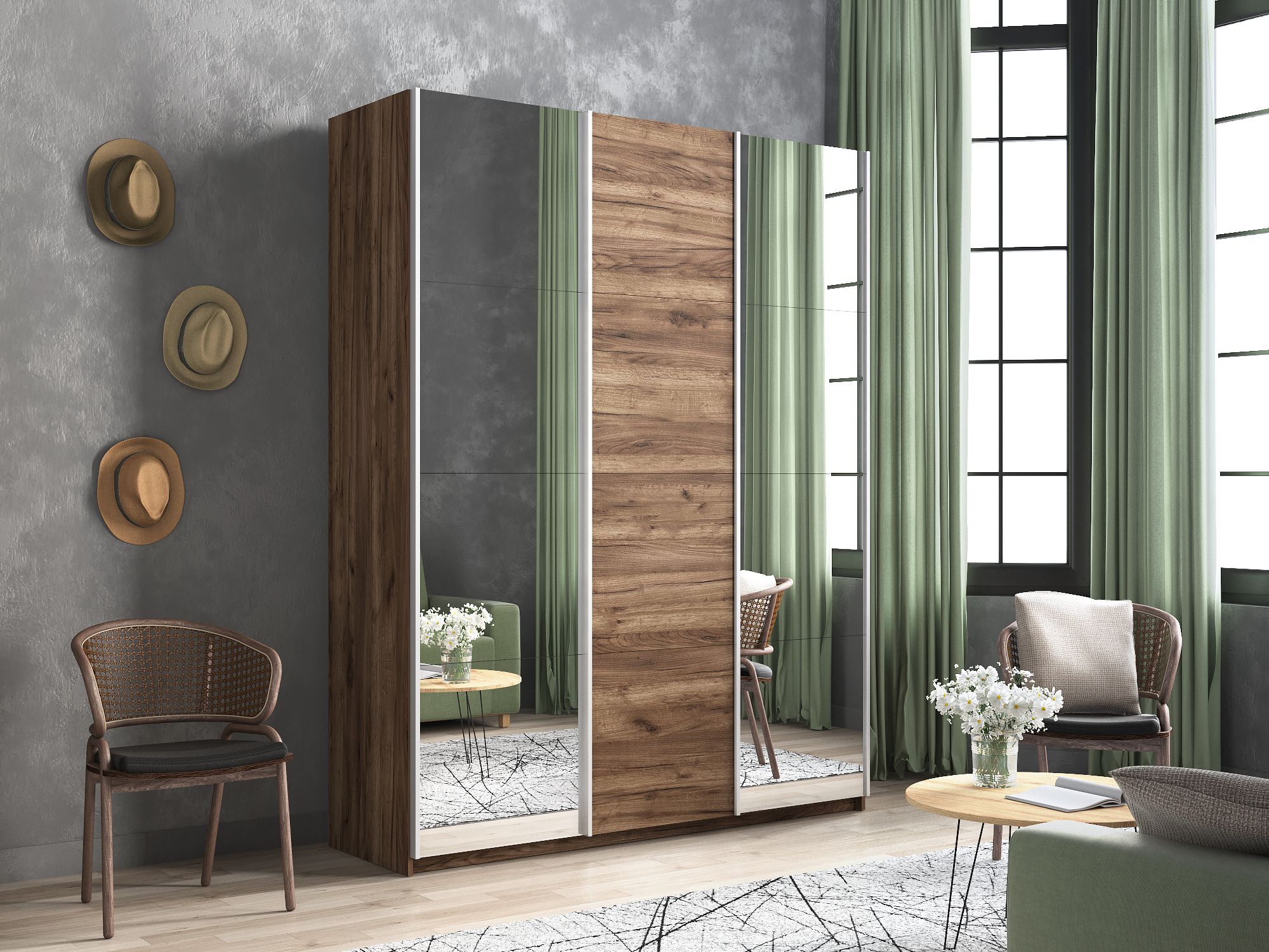 Отзывы о Столплит Шкаф Прайм трио 1ДСП+2 зеркало 2300х2100х570 Дуб/крафт/табак