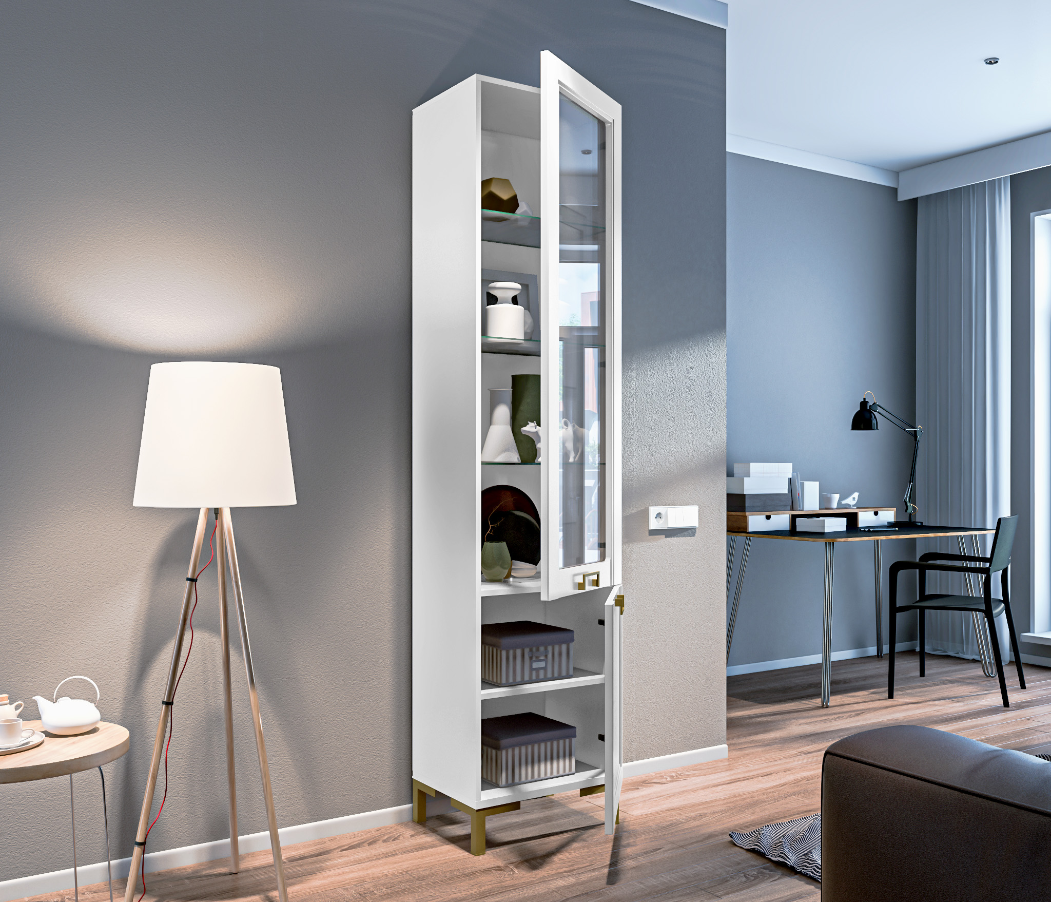 Ассоль СБ-3429 Шкаф-витрина Белый/МДФ БелыйАссоль СБ-3431 Полка Белый,МДФ Белый