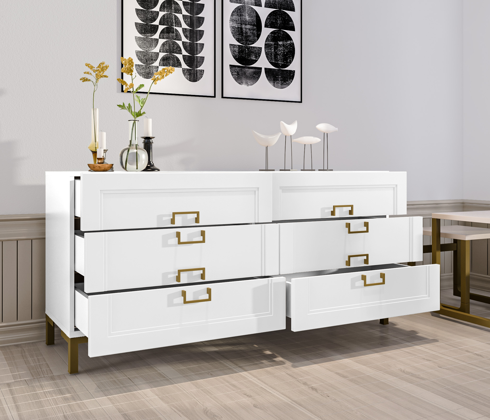 Ассоль СБ-3435 Комод Белый/МДФ Белый