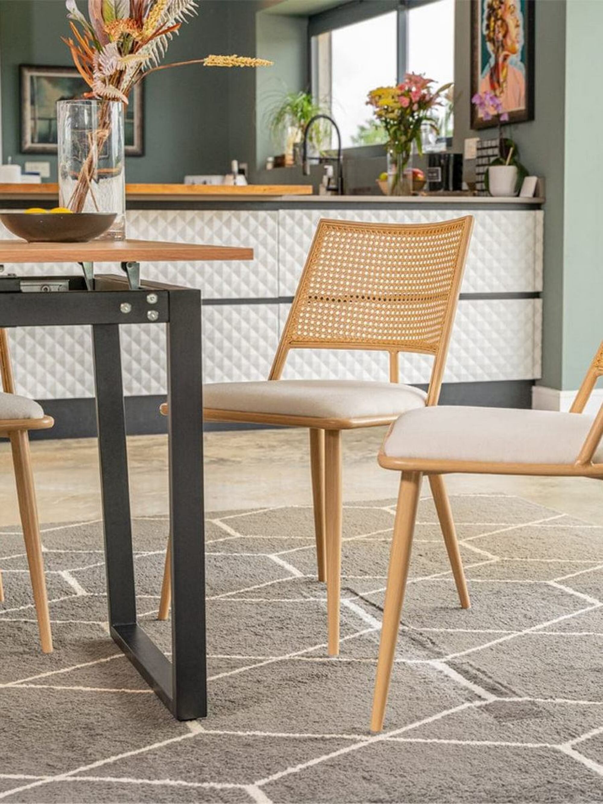 Спинка стула выполнена из искусственного ротанга, что придает ему современный и стильный вид. Максимальная нагрузка на стул составляет 120 кг, что делает его надежным и устойчивым.
