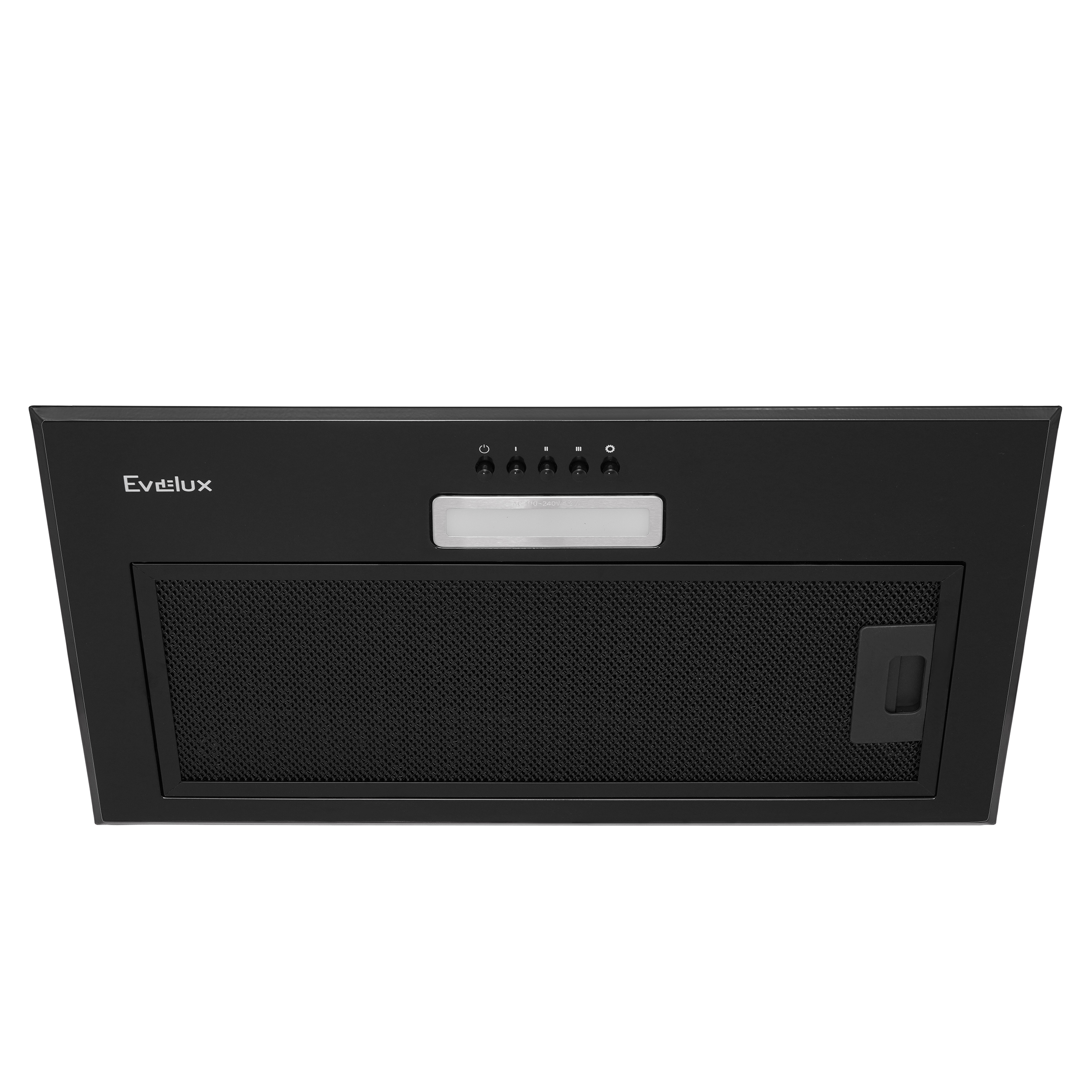 Встраиваемая вытяжка, полновстраиваемая в шкаф, 60 см, отвод/циркуляция, механический контроль, 3 скорости работы, производительность 750 м³/ч, LED освещение, металл, черный, 525x291х276 мм.