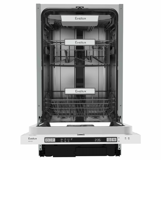 Встраиваемая посудомоечная машина узкая, 45 см, выдвижной лоток для столовых приборов, 7 программ, 10 комплектов, дисплей, таймер 1-24, А++АА, 49 дб уровень шума, регулировка корзины по высоте Easy Lift, половинная загрузка, луч на полу, автоооткрывание,9 л потребление воды, система защиты от протечек, внутренняя поверхность из нержавеющей стали, 448х550х815 мм.