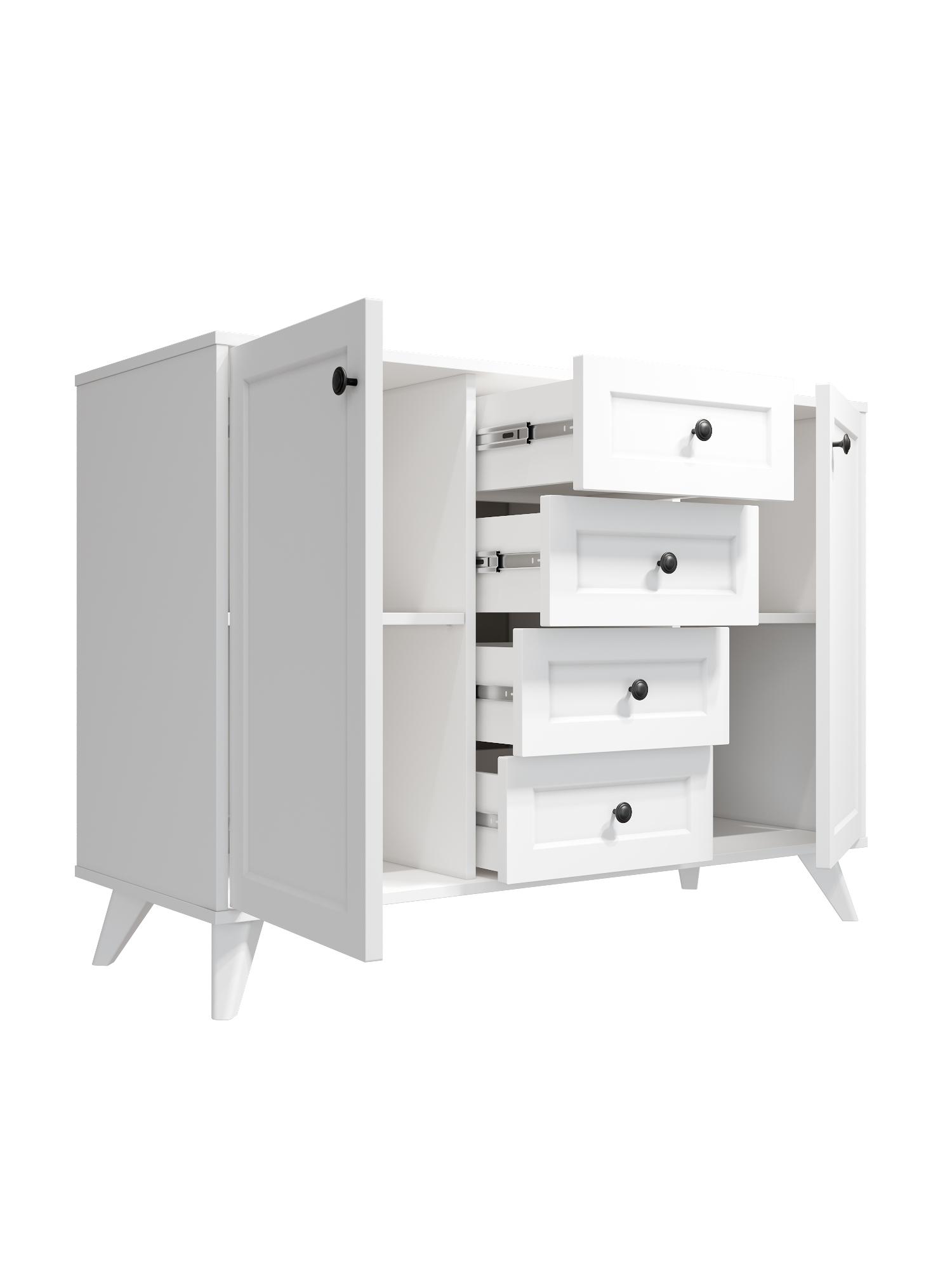 • 4 выдвижных ящика на телескопических направляющих полного выдвижения