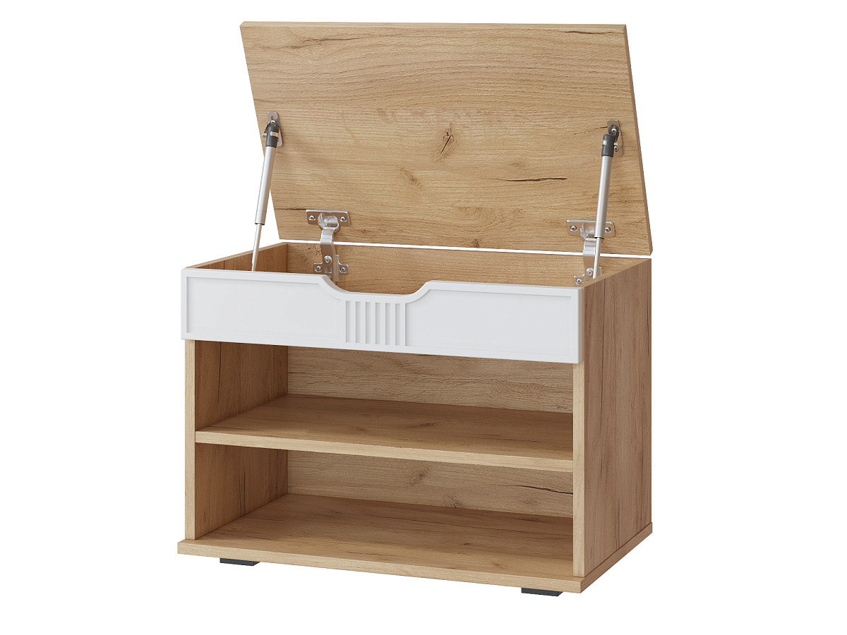 Тумба для обуви Эмилия ЭЛ-44 – компактная модель для комфортного переобувания в прихожую. Лаконичное изделие оборудовано двумя полками для обуви и сиденьем, под которым находится удобный ящик для хранения чистящих средств, щеток или зонта. Высота опоры 20 мм.