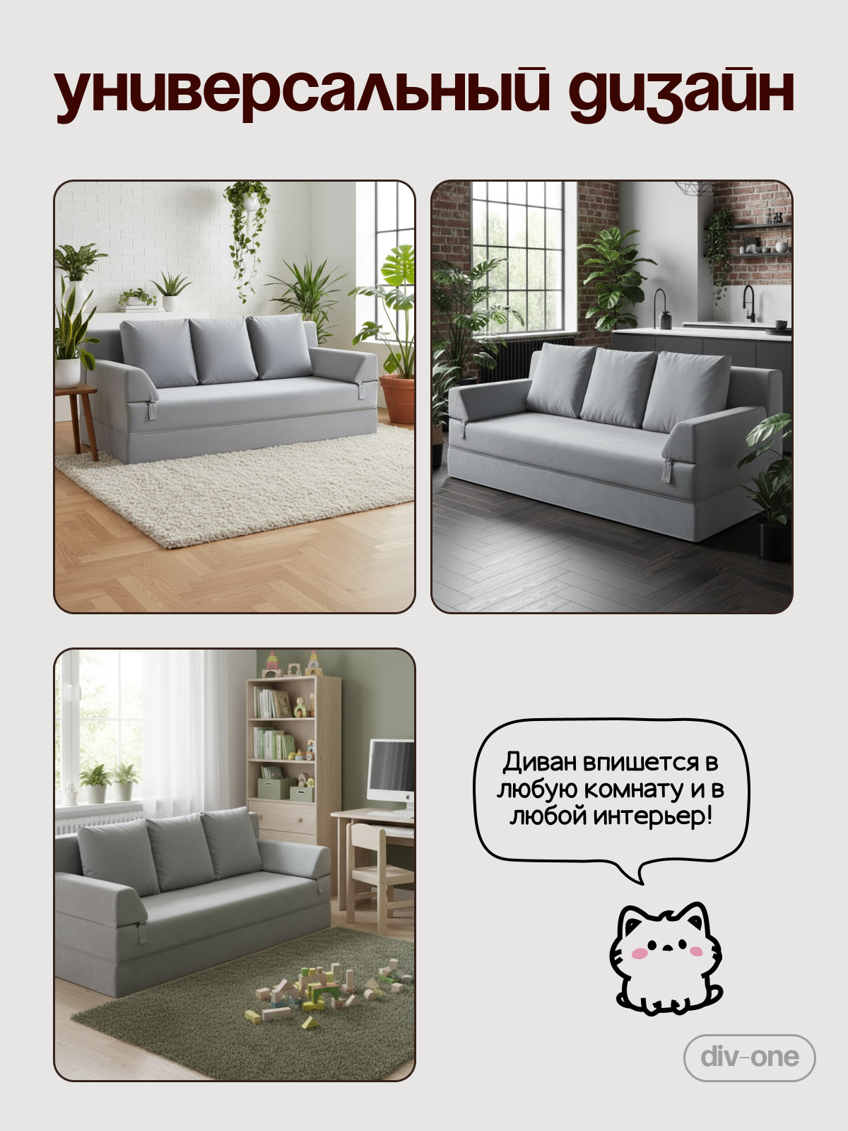 Экологически чистые материалы и продуманный дизайн позволят создать уютную атмосферу в комнате. Удобные съемные подушки обеспечивают дополнительный комфорт во время отдыха, а легкость конструкции позволяет без труда перемещать диван из комнаты в комнату. Книжка подходит не только для квартиры, но и для дачи. Стильный вид впишется в любой интерьер — от лофта до модерна.