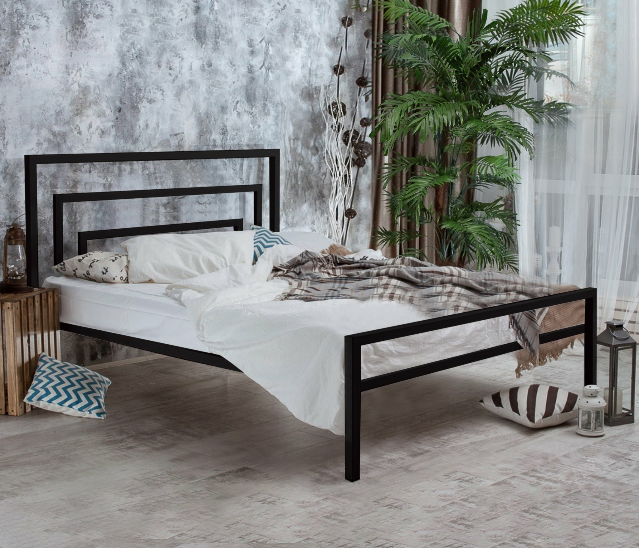 Металлическая кровать Атланта - изысканная, эффектная кровать в стиле лофт ручного исполнения, которая будет уместна как в интерьерах соответствующей стилистики, так и в комнатах, оформленных в любом современном направлении дизайна.