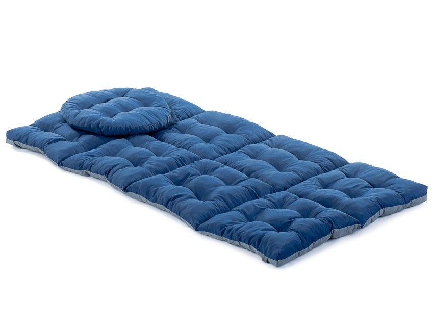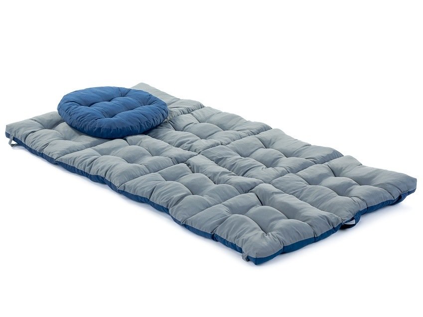 Матрас скручивается и фиксируется липучками, затем сверху кладется подушка и одевается внешний чехол - просто и удобно.