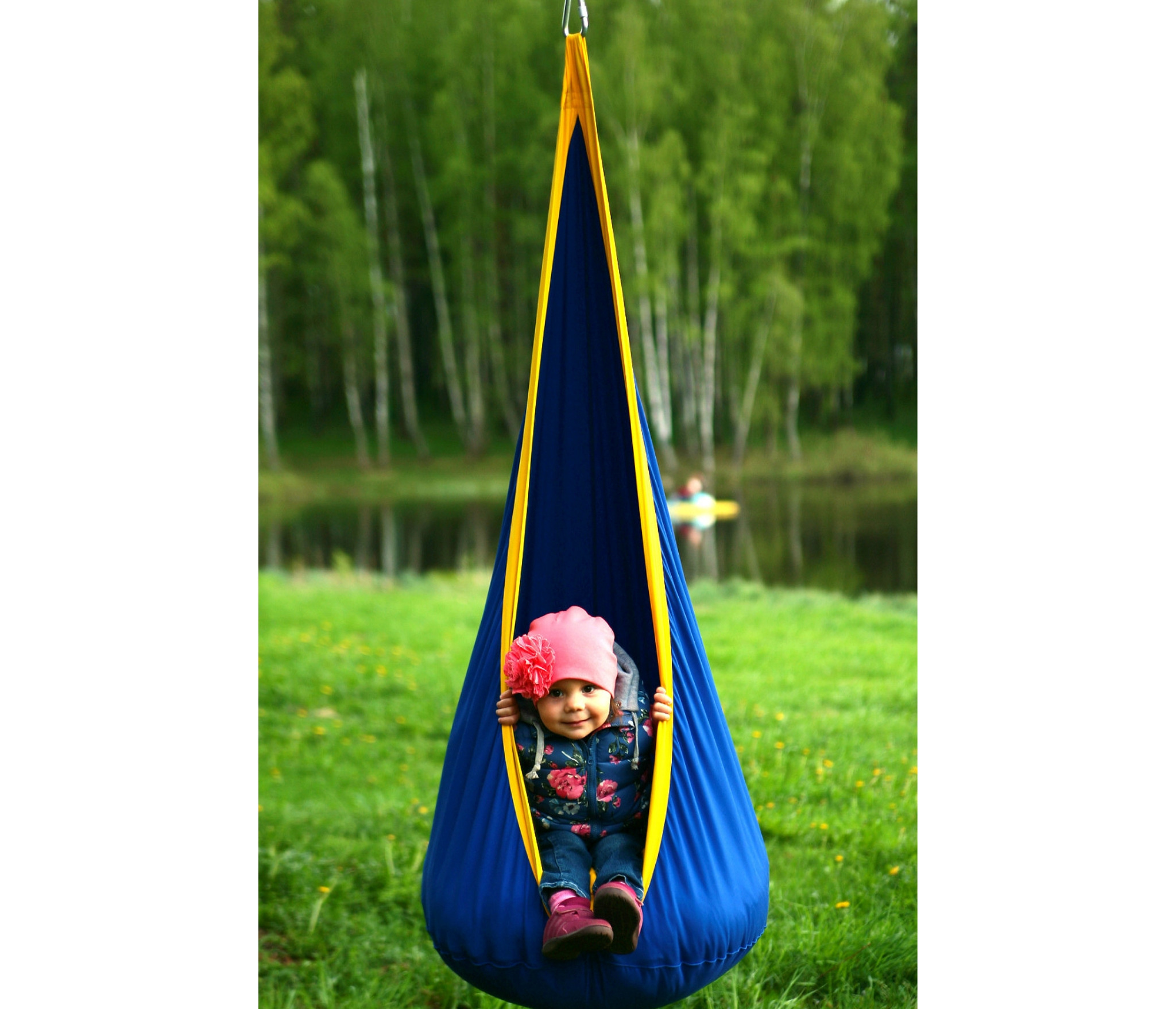 Продуманная каплевидная форма гамака, с мягкой двусторонней подушкой на дне, позволит малышу наслаждаться качанием в максимально безопасных и комфортных условиях.