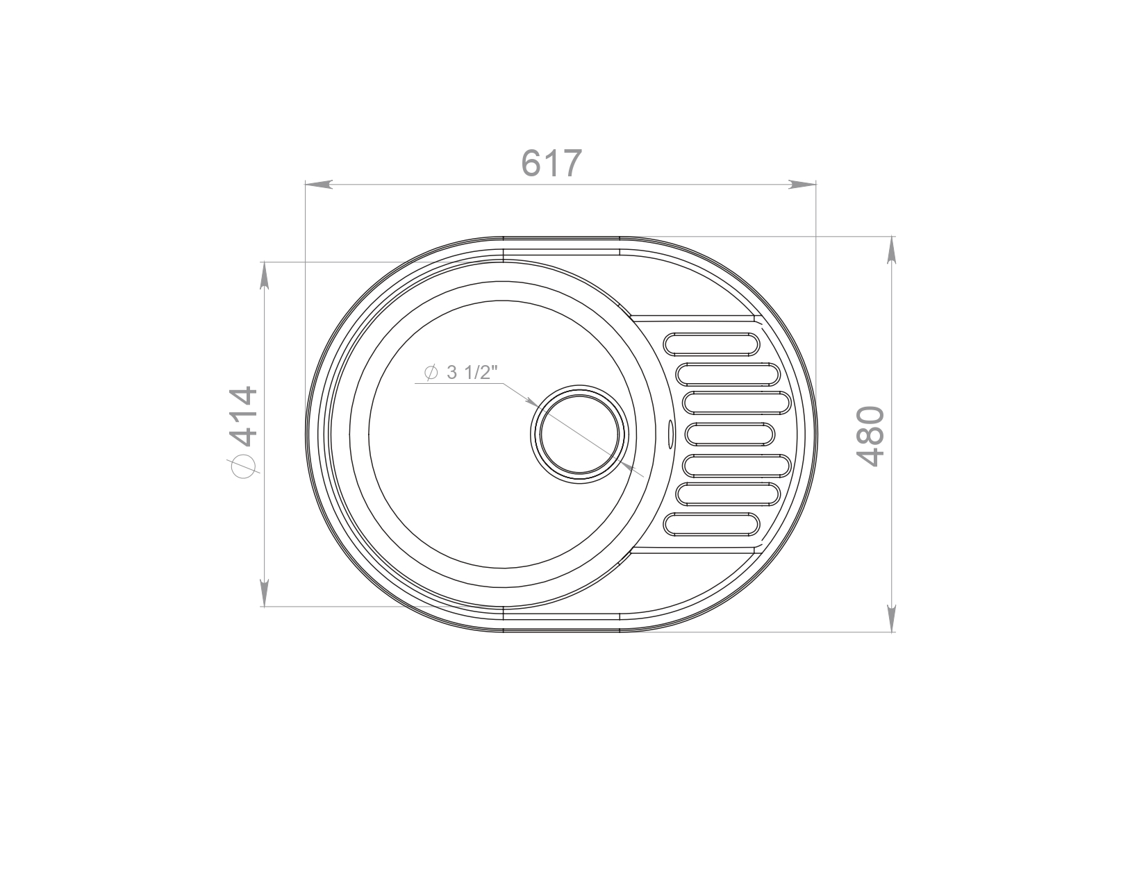 Общий размер мойки: 620х480