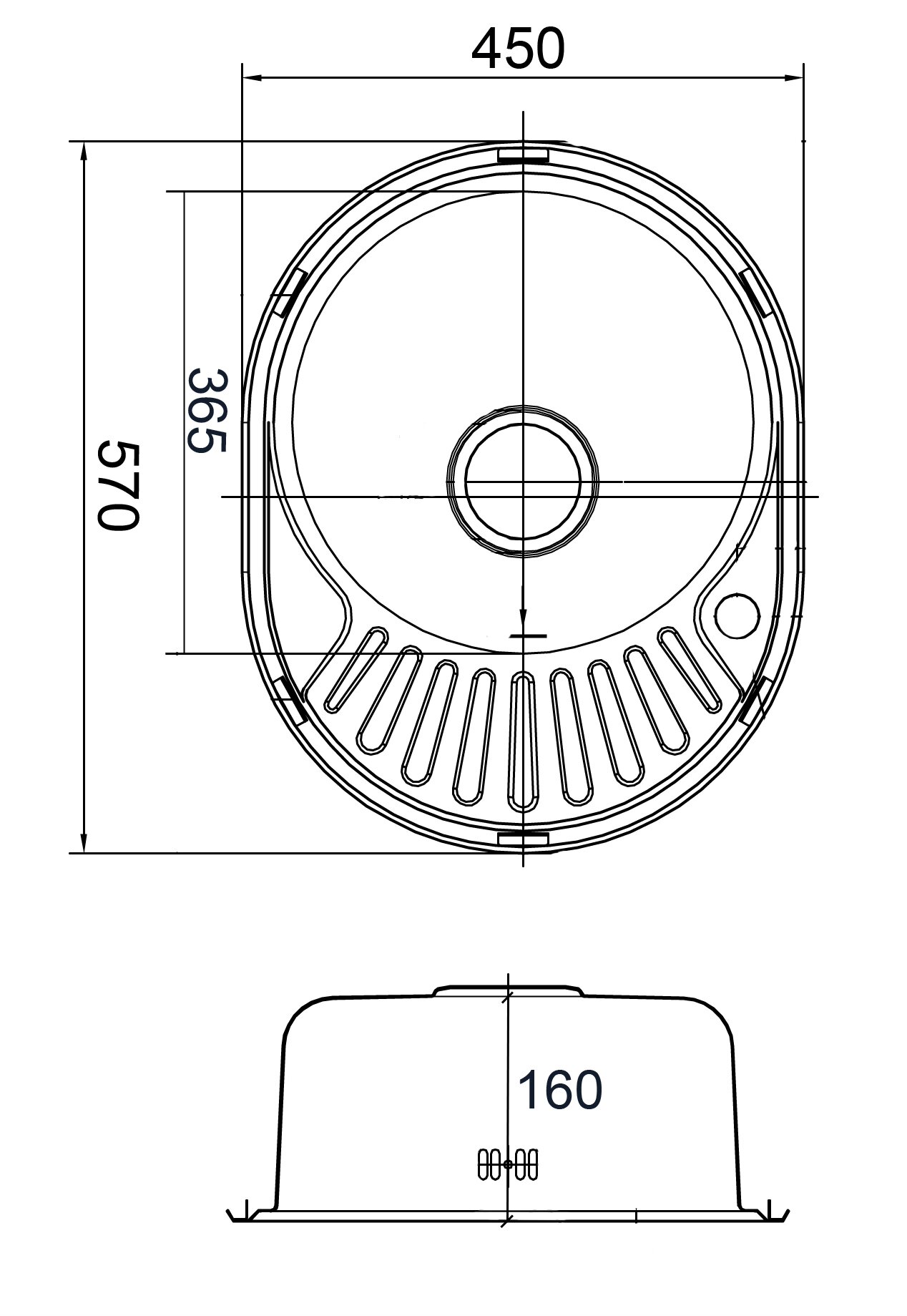 • Диаметр мойки Ø 370 мм