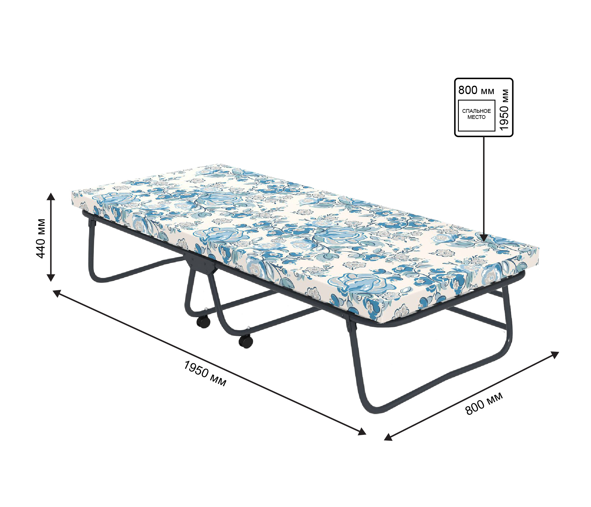 • В разложенном виде – 1950*800*440 мм