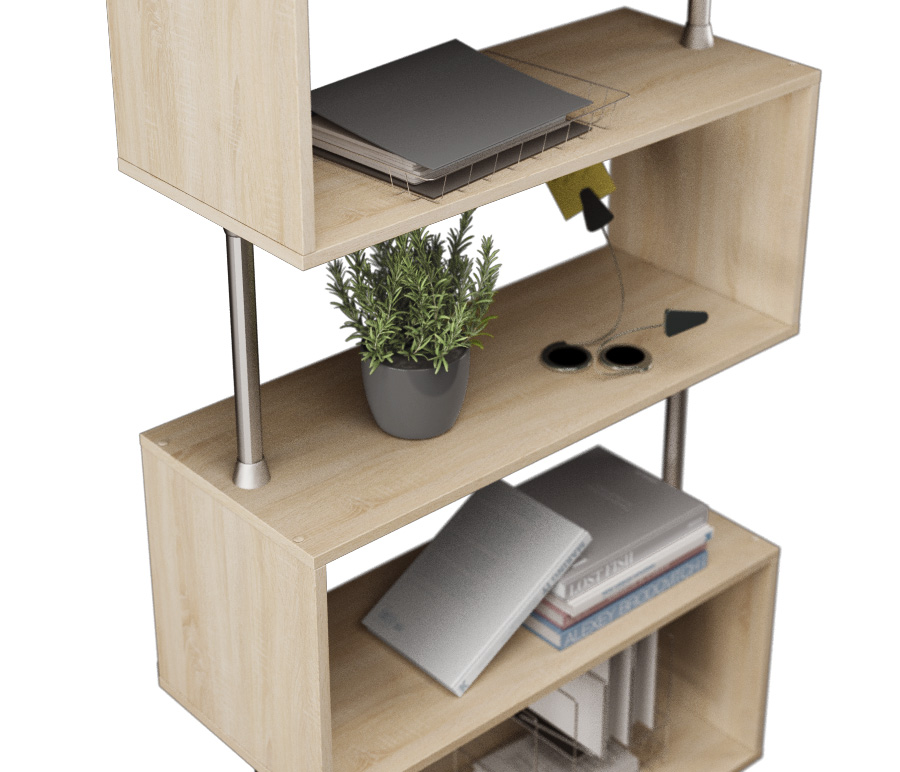Производится стеллаж Кито из современного и прочного КДСП. Стеллаж оснащен протекторами или «лапками», которые не позволяют повредить пол.
