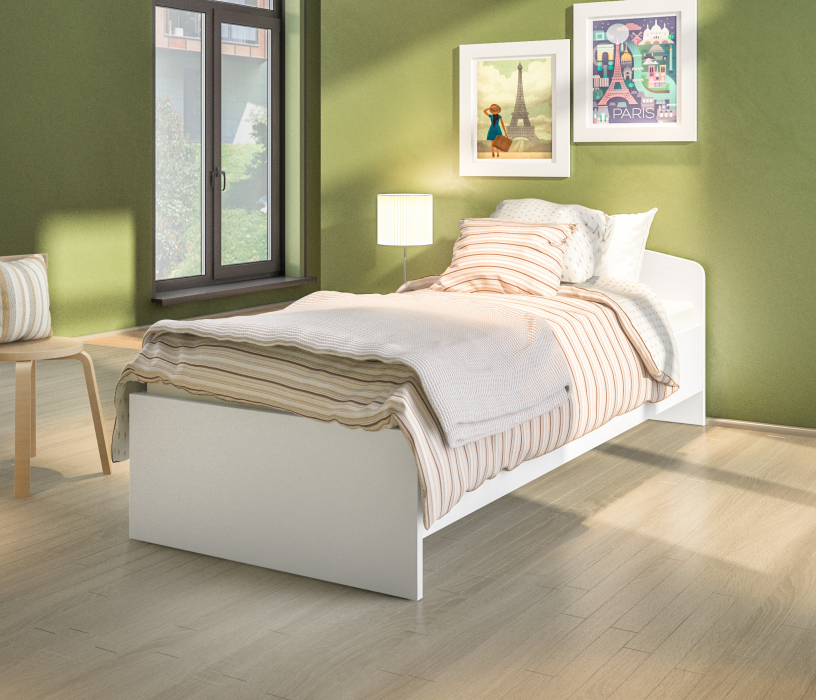 Произведена кровать из прочного и экологичного ЛДСП. Материал отделки короба в Белом цвете, произведен в соответствии с новыми технологиями, безопасный, не несет вред для здоровья и для окружающей среды.