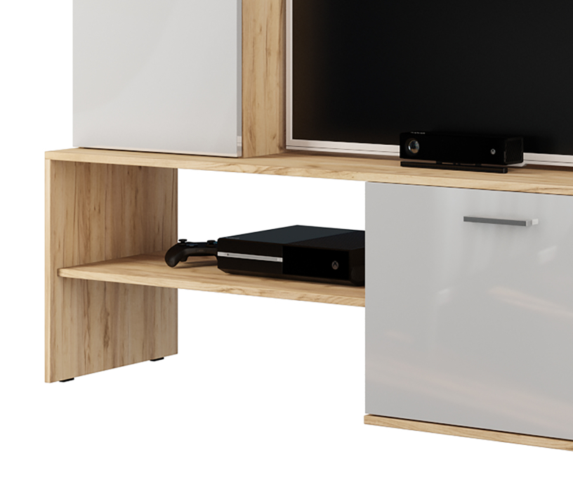 глянцевые фасады, С полками, С ТВ тумбой , Стекло