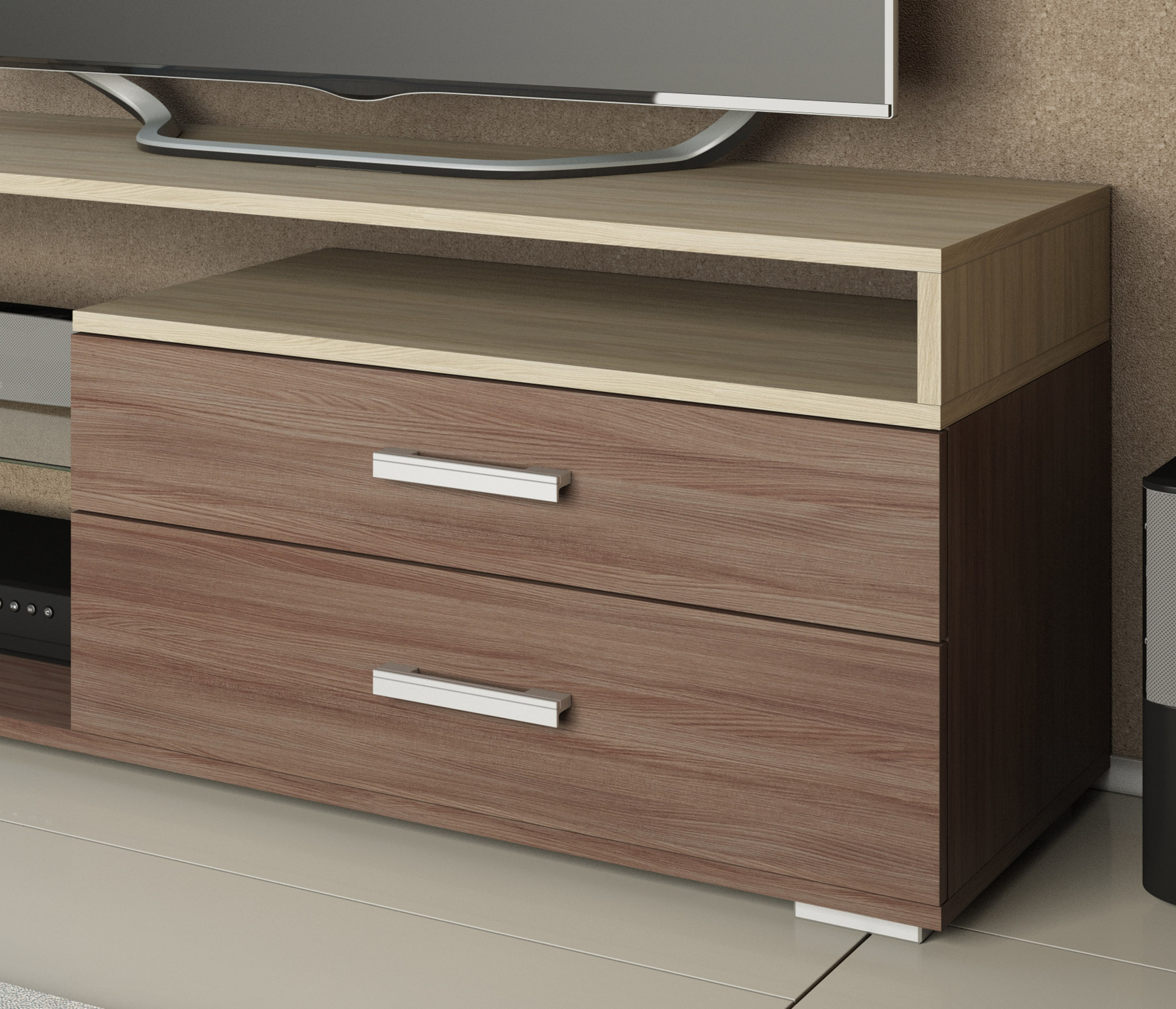 Вполне достойно смотрится, под телевизор подошла. Вписалась в интерьер замечательно, цвет смотрится солидно. Менеджер ответственный: время согласовали, все проверили. Тумба вместительная.
