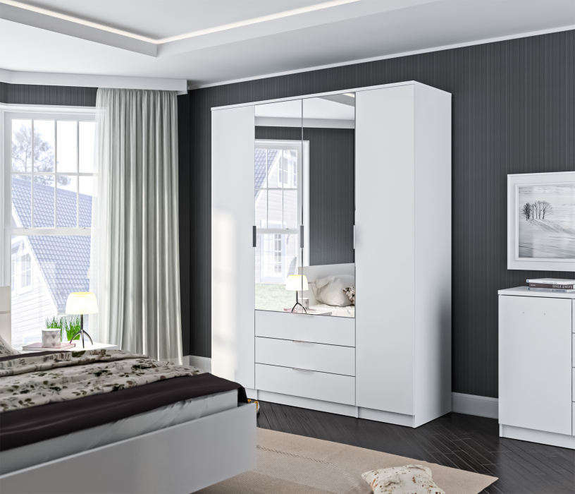 Шкаф 4х дверный с зеркалами Николь СБ-2595/1 Белый (Белый) Код 00000280365