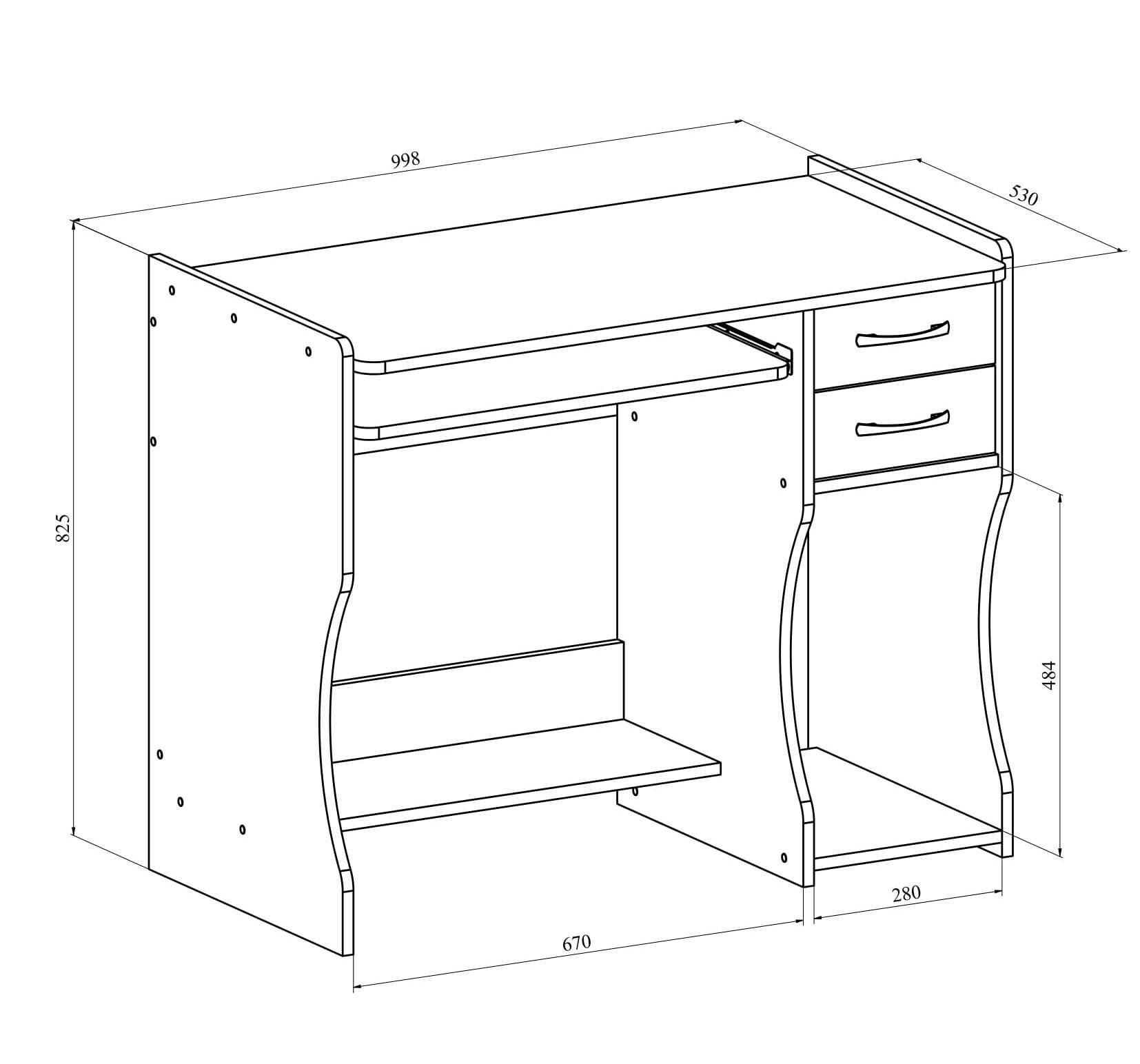 Материал корпуса/фасада: ЛДСП 16 мм. Размеры модуля (ш/г/в) в мм: 998х530х825.