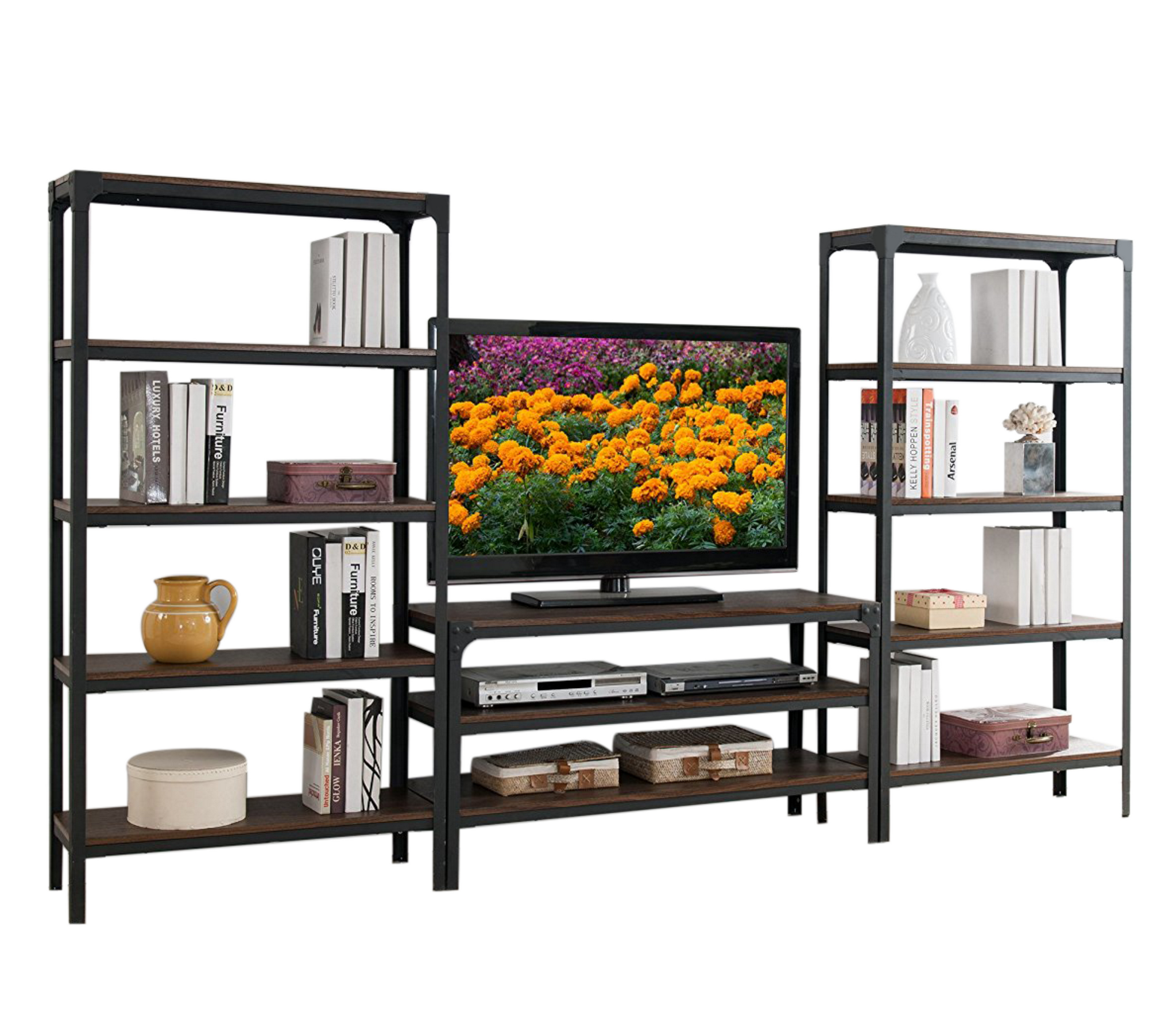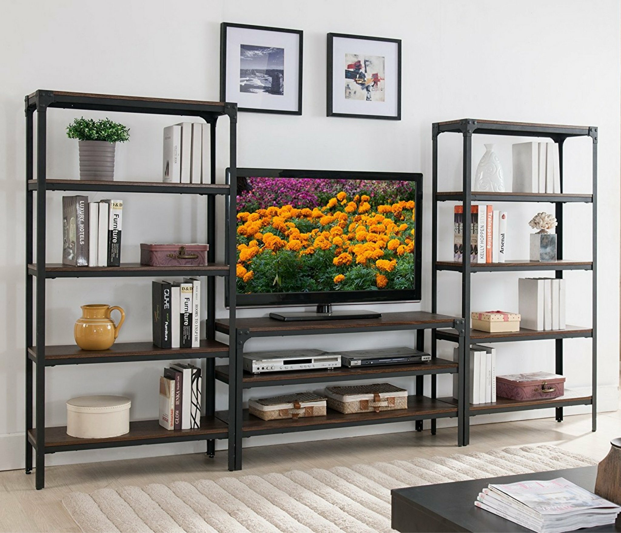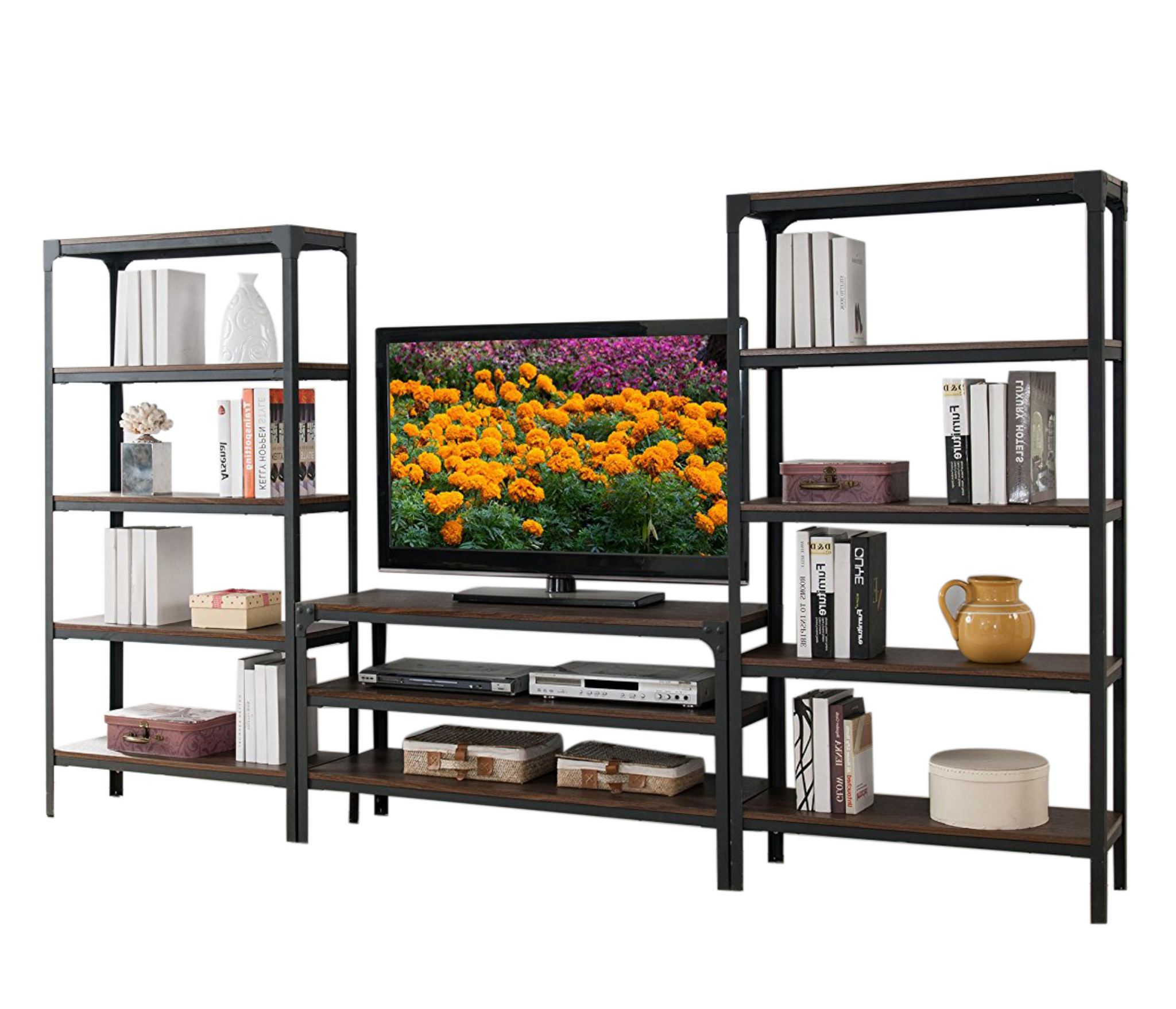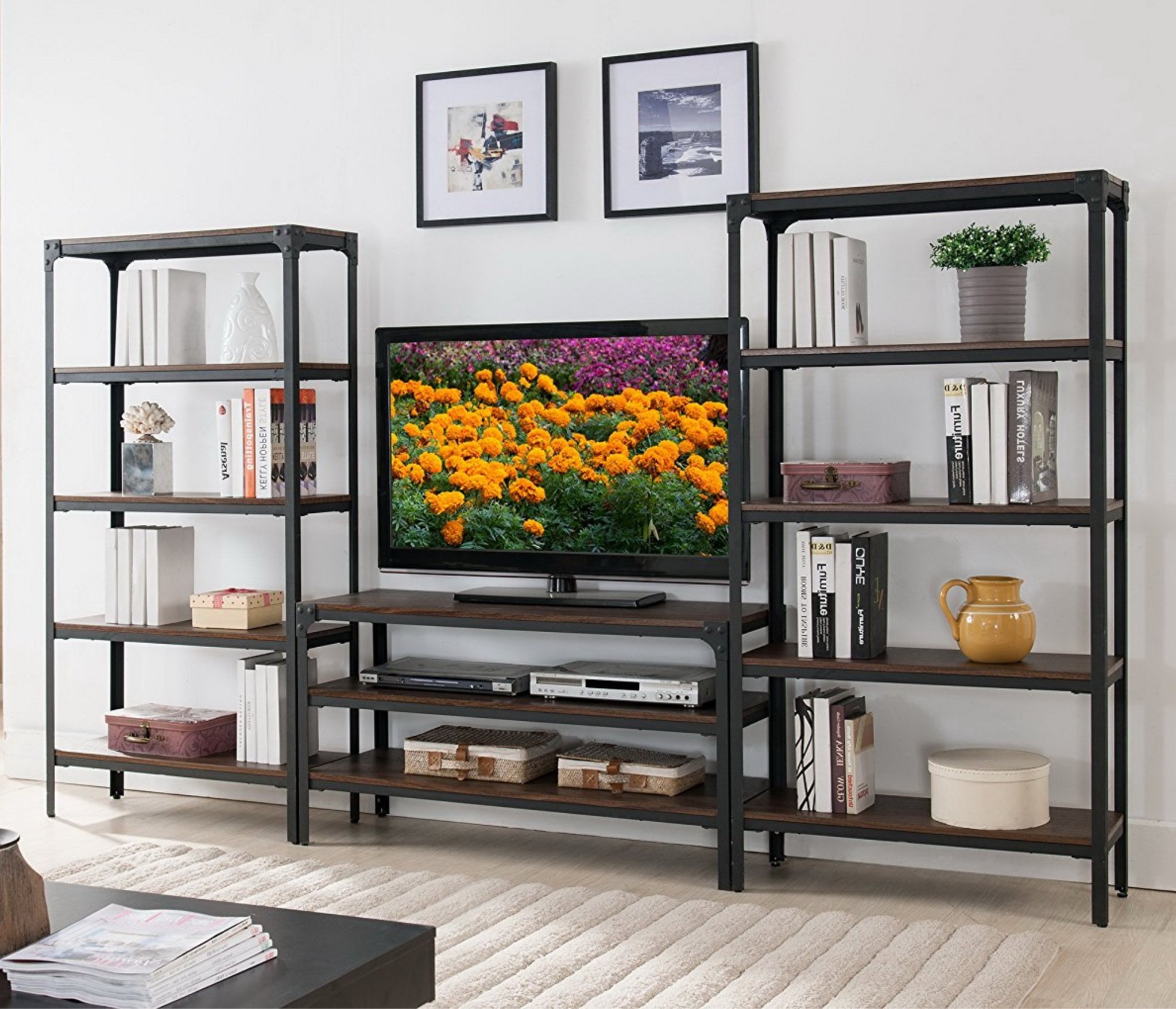 со стеллажом, глянцевые фасады, С полками, С ТВ тумбой