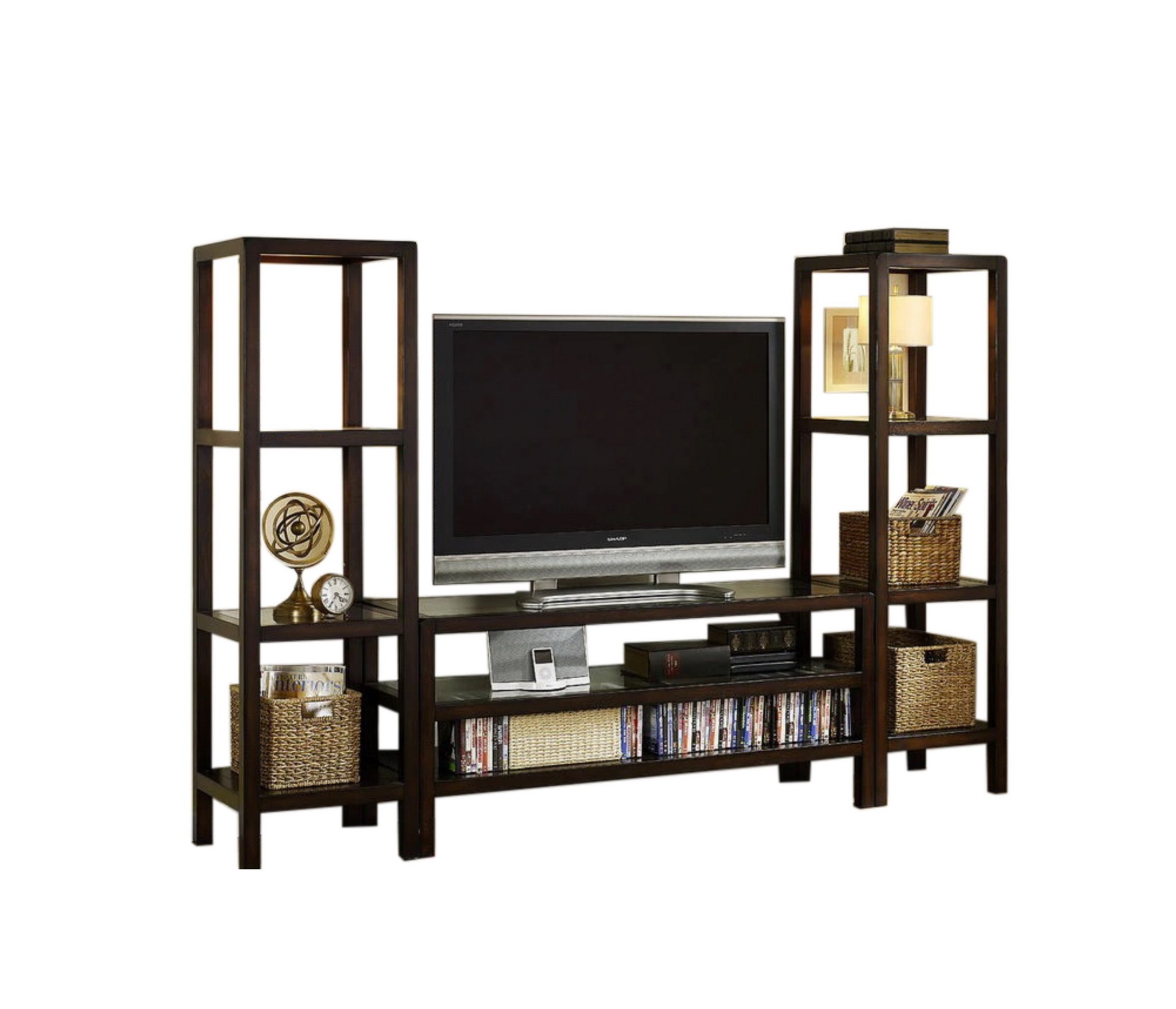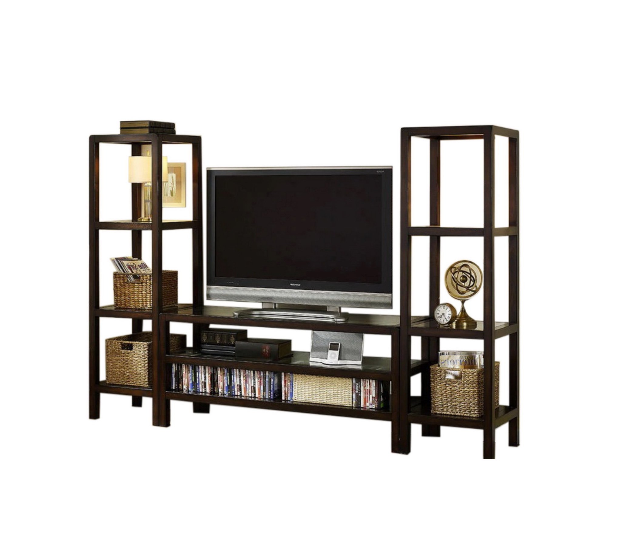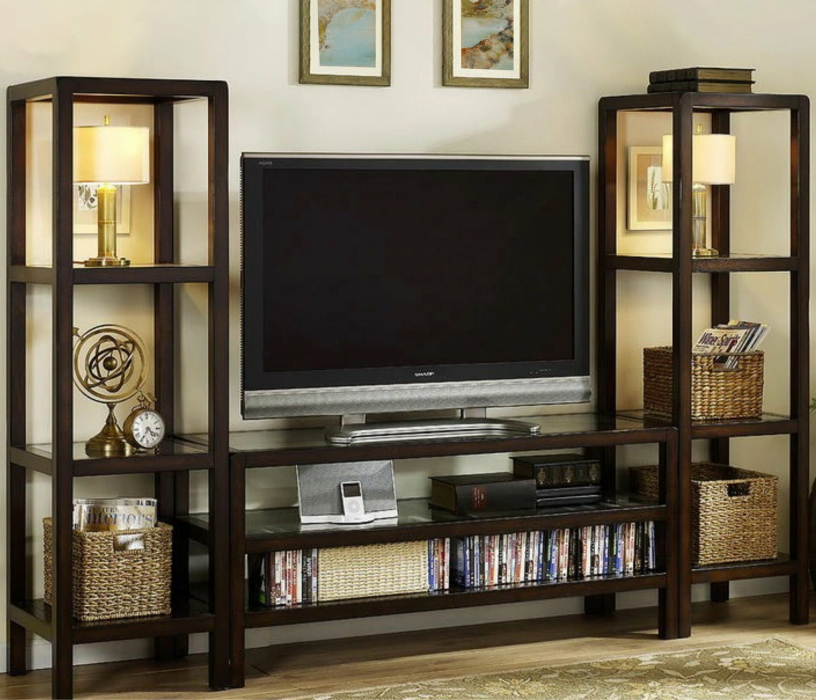 С ТВ тумбой , со стеллажом, глянцевые фасады, С полками
