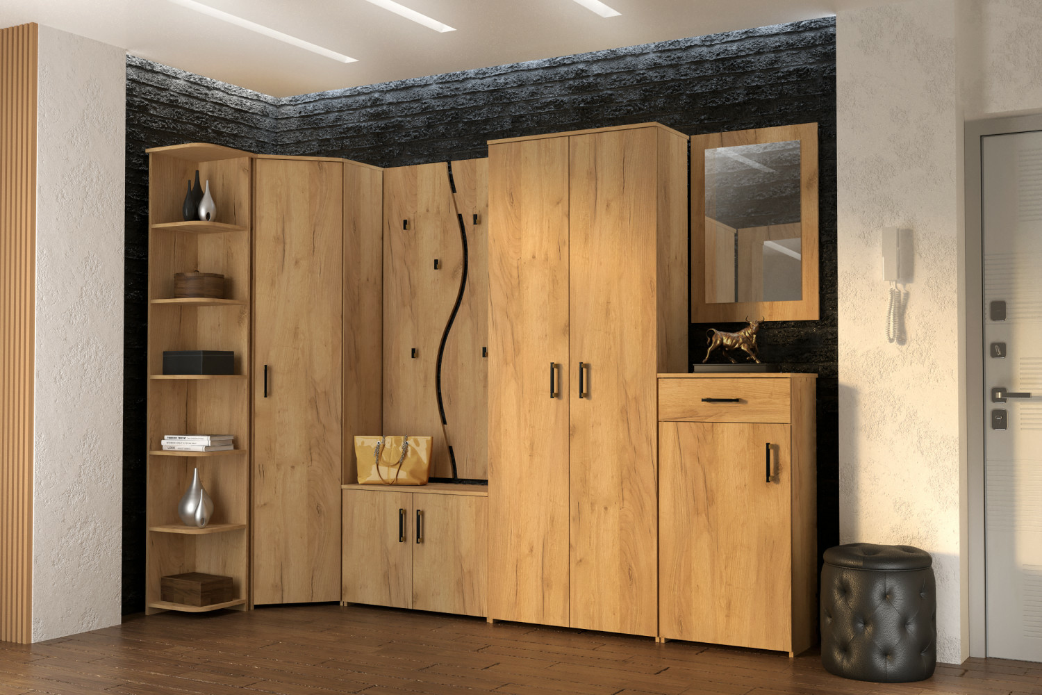 Отзывы о Столплит Набор мебели для прихожей Агата 001 Дуб крафт золотой