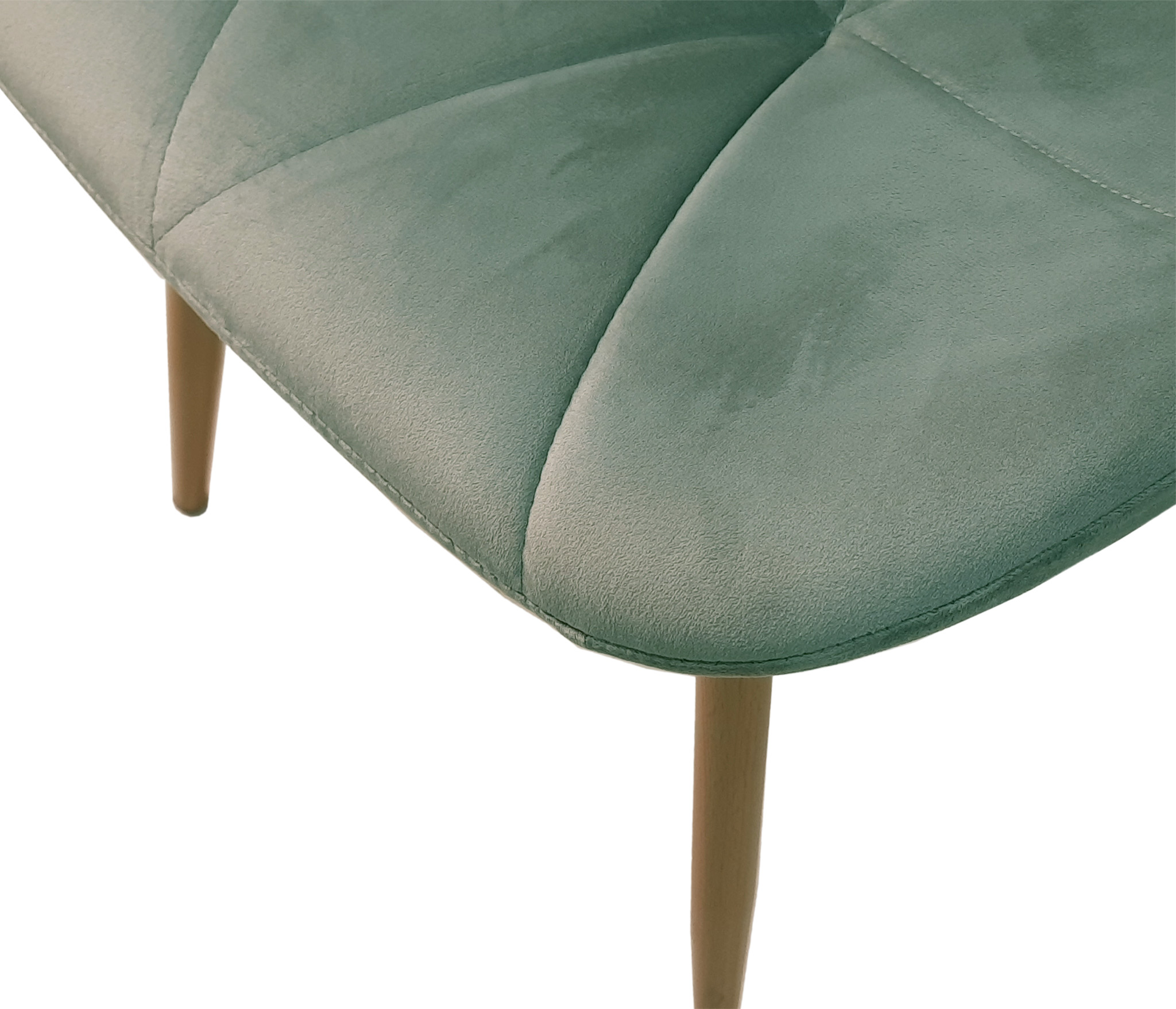 Обеденный стул с металлическими ножками, покрыт пленкой в цвет дерева. Сиденье и спинка имеют модную геометрическую форму. Изготовлены из фанеры с мягким слоем пенополиуретана, обиты бархатом, который чрезвычайно приятен на ощуп, устойчив к механическим повреждениям и легко очищается от грязи. Спинка сиденья наклонена под небольшим углом для удобной посадки. Размер: 540*500*770мм.