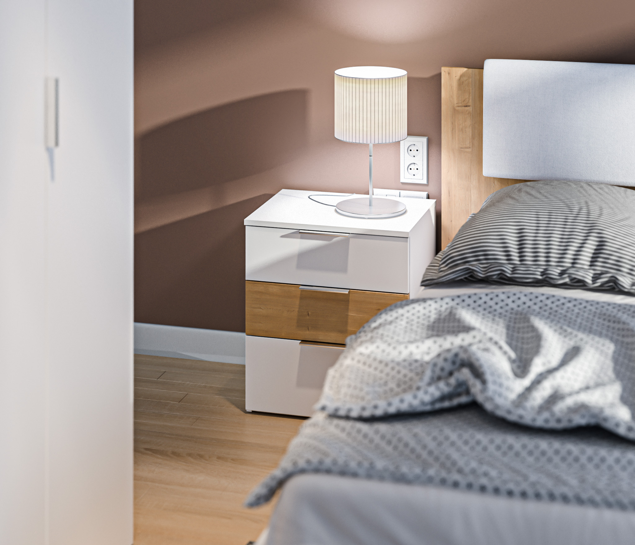 Материал корпуса: ЛДСП цвет Белый Альпийский, Дуб Гамильтон натуральный.