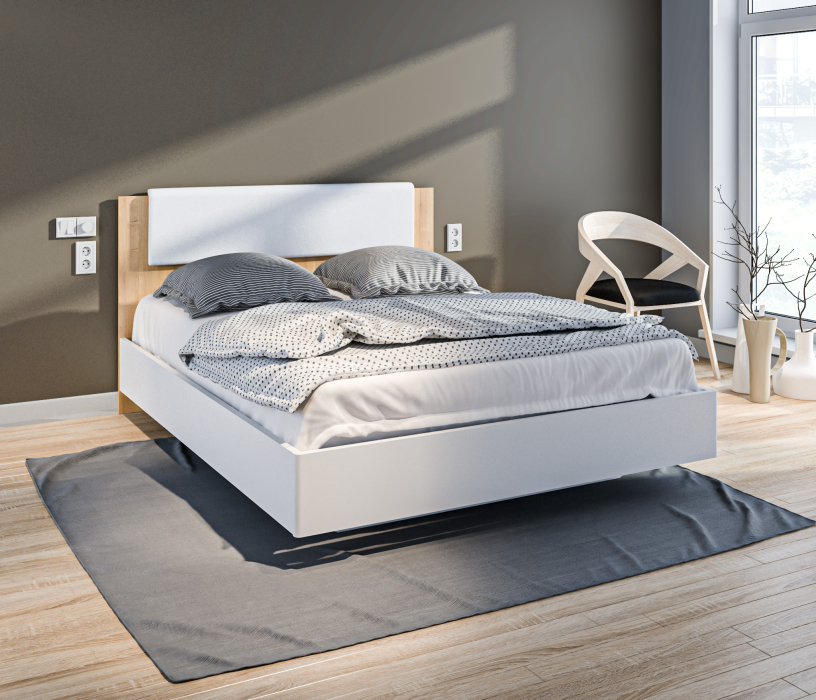 Двуспальная кровать имеет в изголовье мягкую накладку из качественной искусственной кожи.