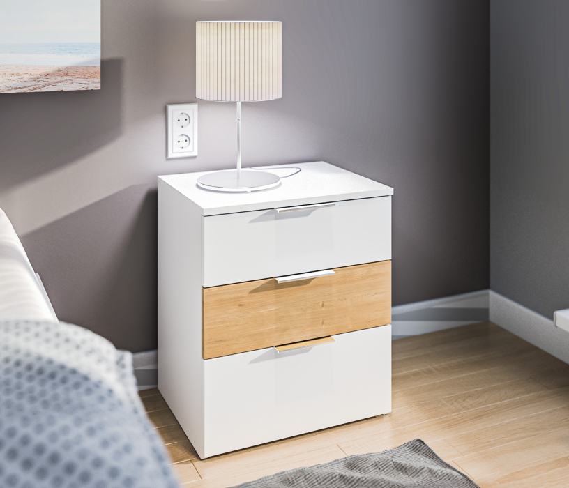 Тумба имеет три вместительных ящика.