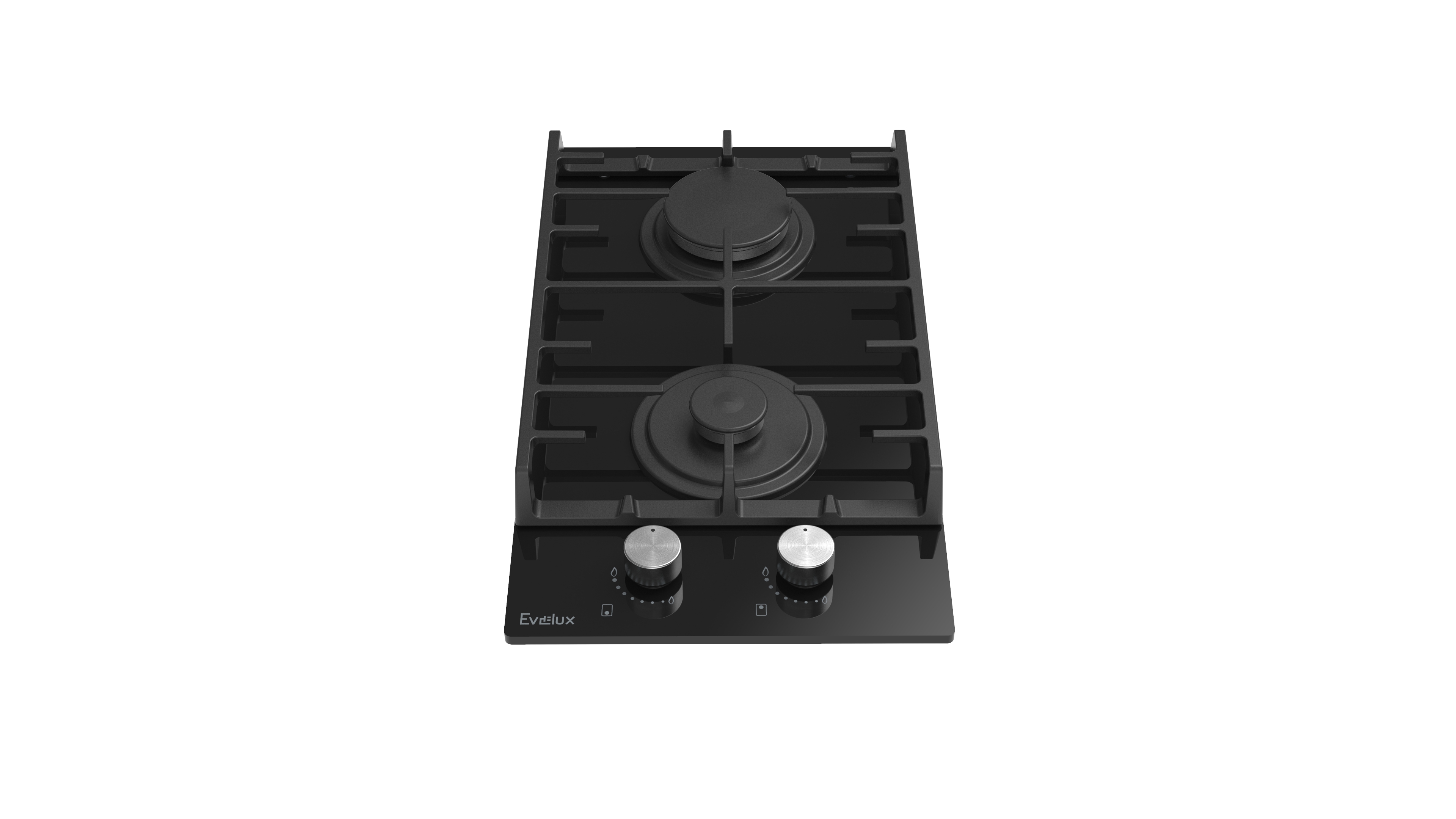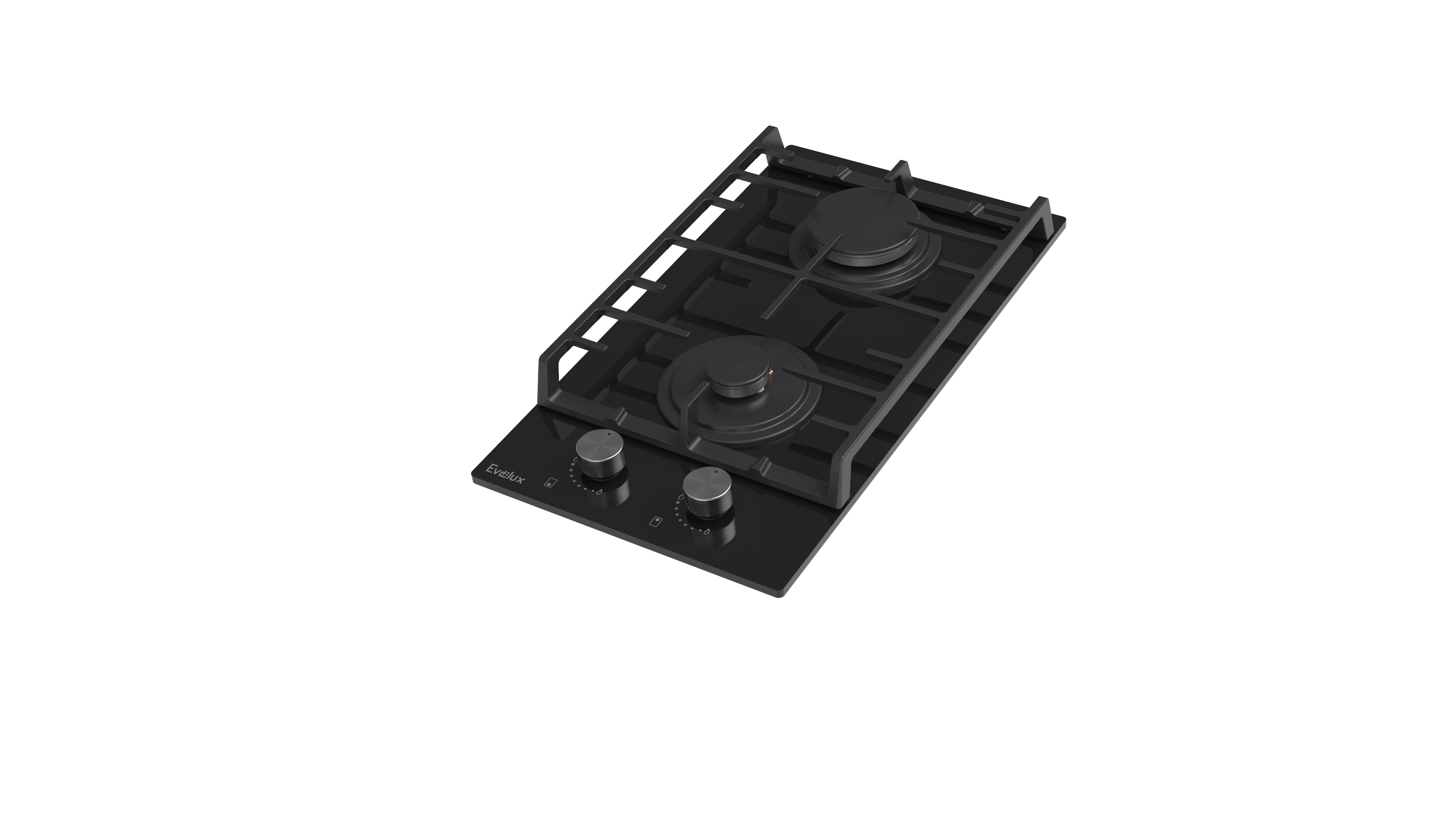 Поворотные регуляторы газовых варочных поверхностей Evelux выполнены из металла, что создает профессиональный стиль и препятствует их перегреву.
