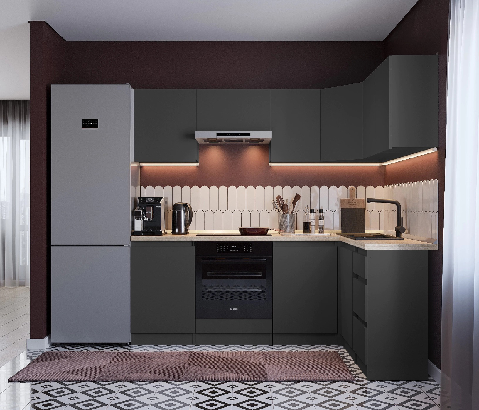 Вы можете дополнить кухню модулями "Ангелина-40", "Ангелина угловая ", "Ангелина ЛСДЯ-60" (Стол под встроенную технику)
