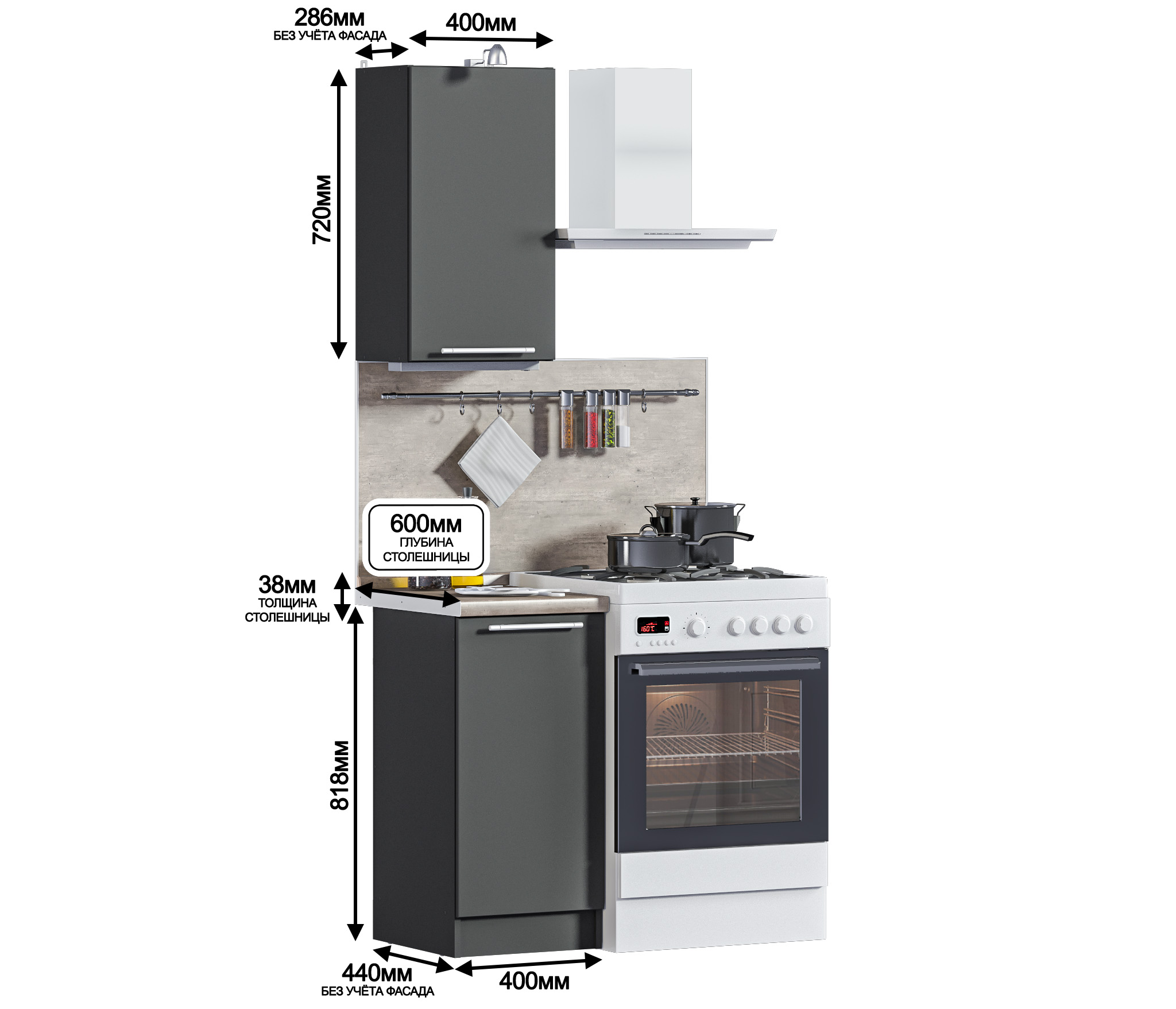 Кухонный гарнитур Ангелина-40 Диамант серый (Диамант серый) Код 00000290917