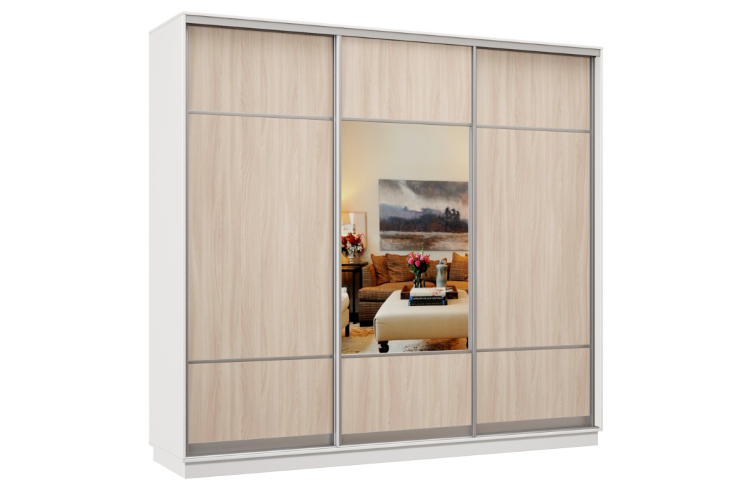 Шкаф-купе Премьер Лайт 57 (08;05;08) трехдверный (Ясень шимо светлый/Белый)