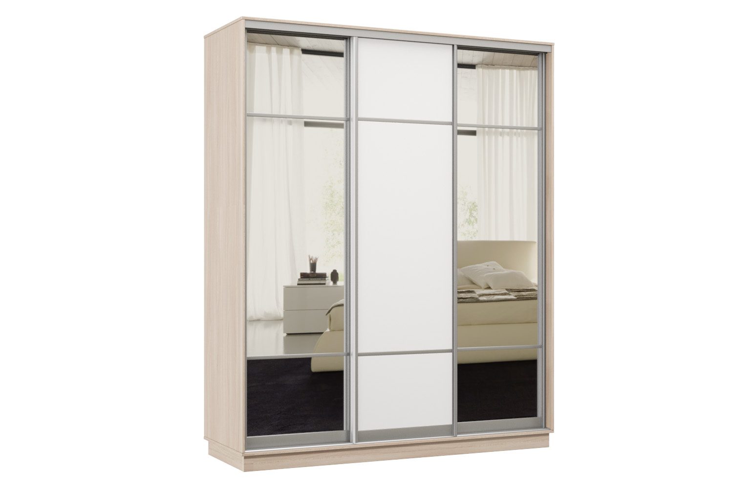 Шкаф-купе Премьер Лайт 21 (11;08;11) трехдверный (Ясень шимо светлый / Белый глянец) Код I0000314976