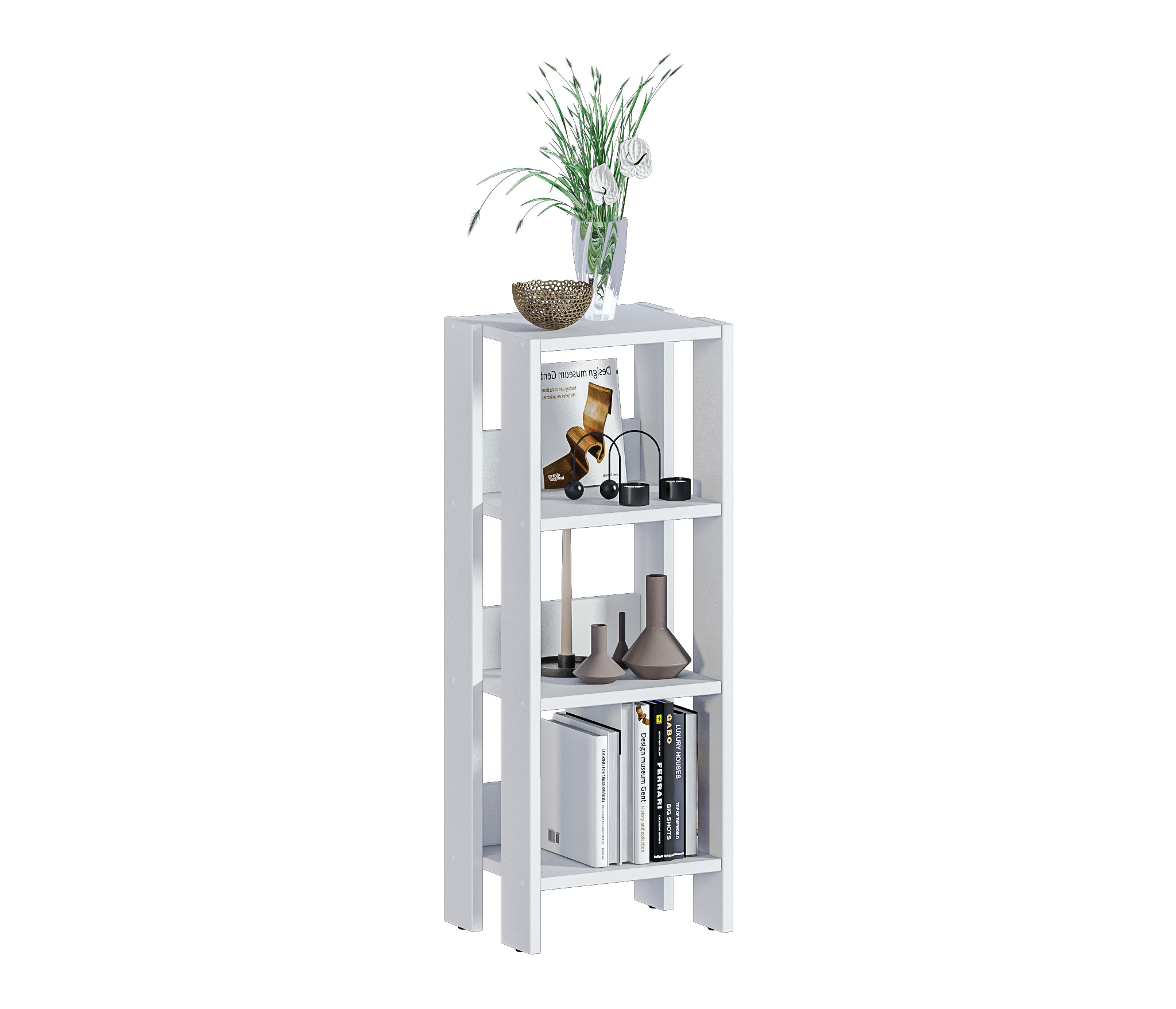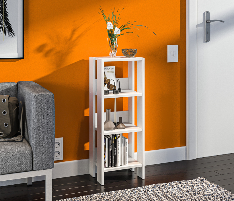 Выполнен стеллаж из современного и прочного ЛДСП (в белом цвете- КДСП).