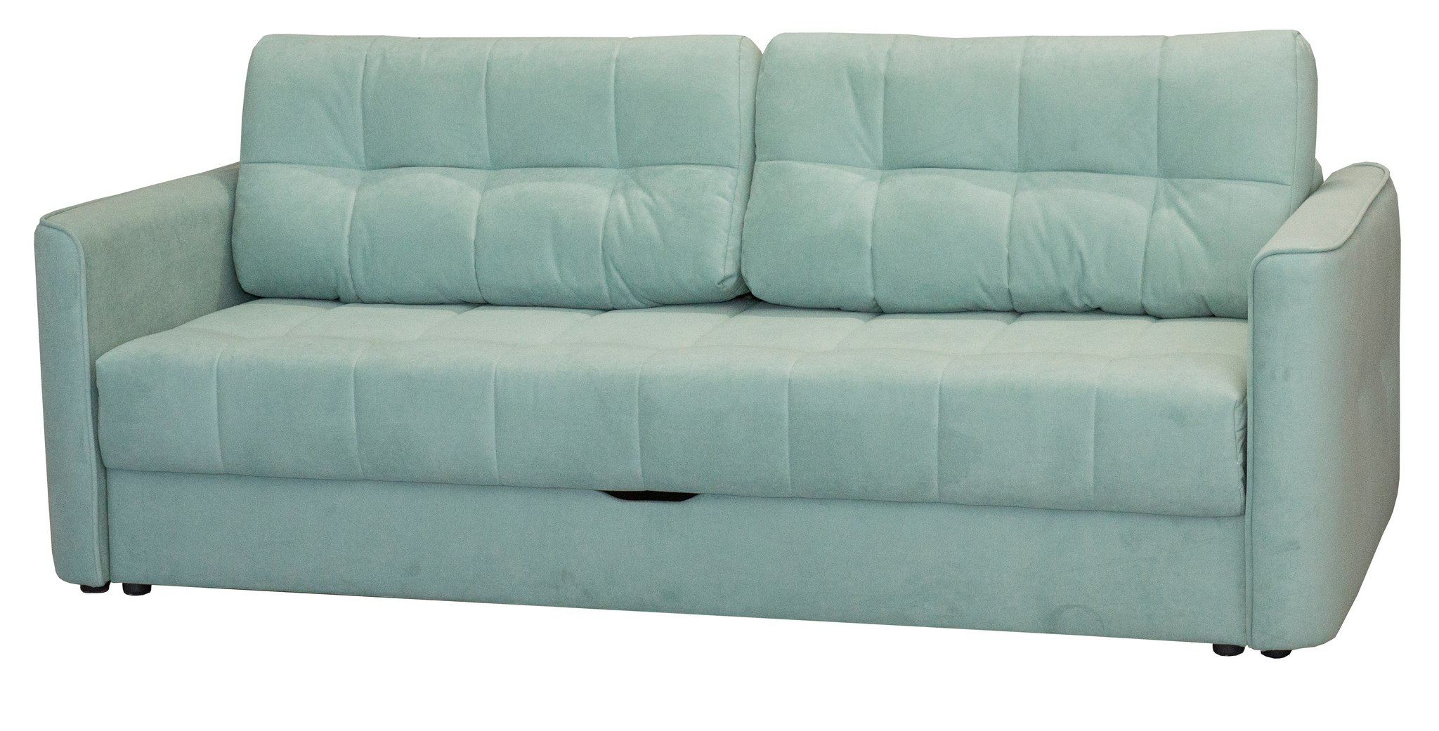 Радиусные углы «сглаживают» изделие. Спальное место легко трансформируется в большую удобную кровать – механизм трансформации «Тик-Так» удобный и лёгкий в эксплуатации. Сиденье создано по технологии «Split Foam». Наполнитель изготовлен из рассечённой анатомической пены, соединённой в несколько слоёв. Сиденье средней жёсткости. Ортопедическое основание «Birch battens» - средней гибкости, на основе берёзовых лат. Идеально подходит для анатомических моделей.