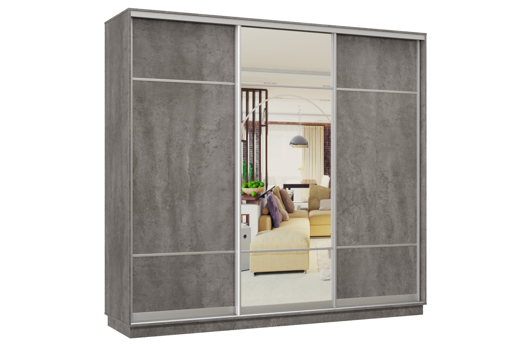 Шкаф-купе Премьер Лайт 58 (08;11;08) трехдверный (Бетон)