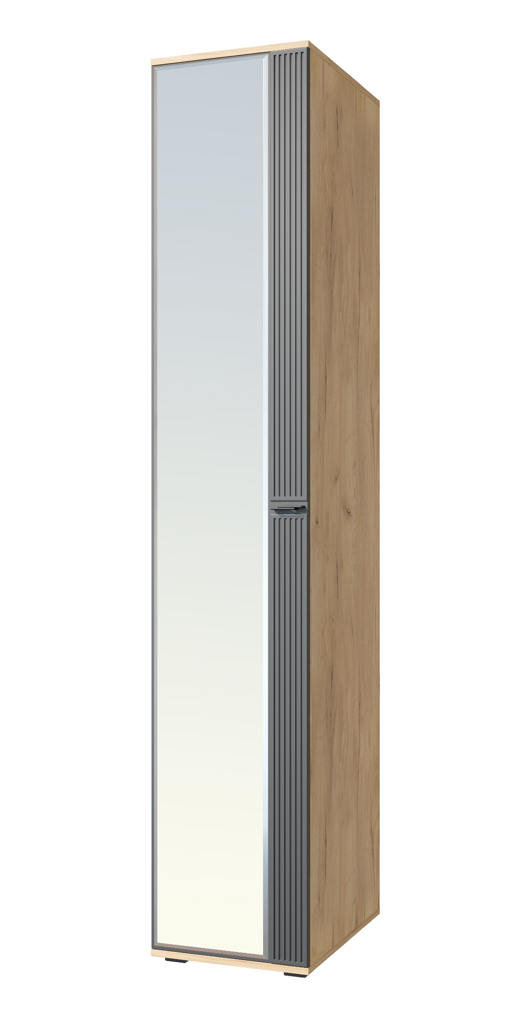Шкаф-пенал с зеркалом Эмилия ЭЛ-15К будет отличным дополнением интерьера любой комнаты. За распашной дверью находится вместительное пространство с полками, созданными для хранения различных предметов: одежды и белья, книг и семейных фотоальбомов и многого другого. Модуль может быть собран в зеркальном варианте «правым» или «левым». Свес крышки в 30 мм обеспечит прилегание к стене с любым плинтусом. Фурнитура: петли с доводчиками, ручка металл. Важная информация. Мебель доставляется в разобранном виде, в упаковках.