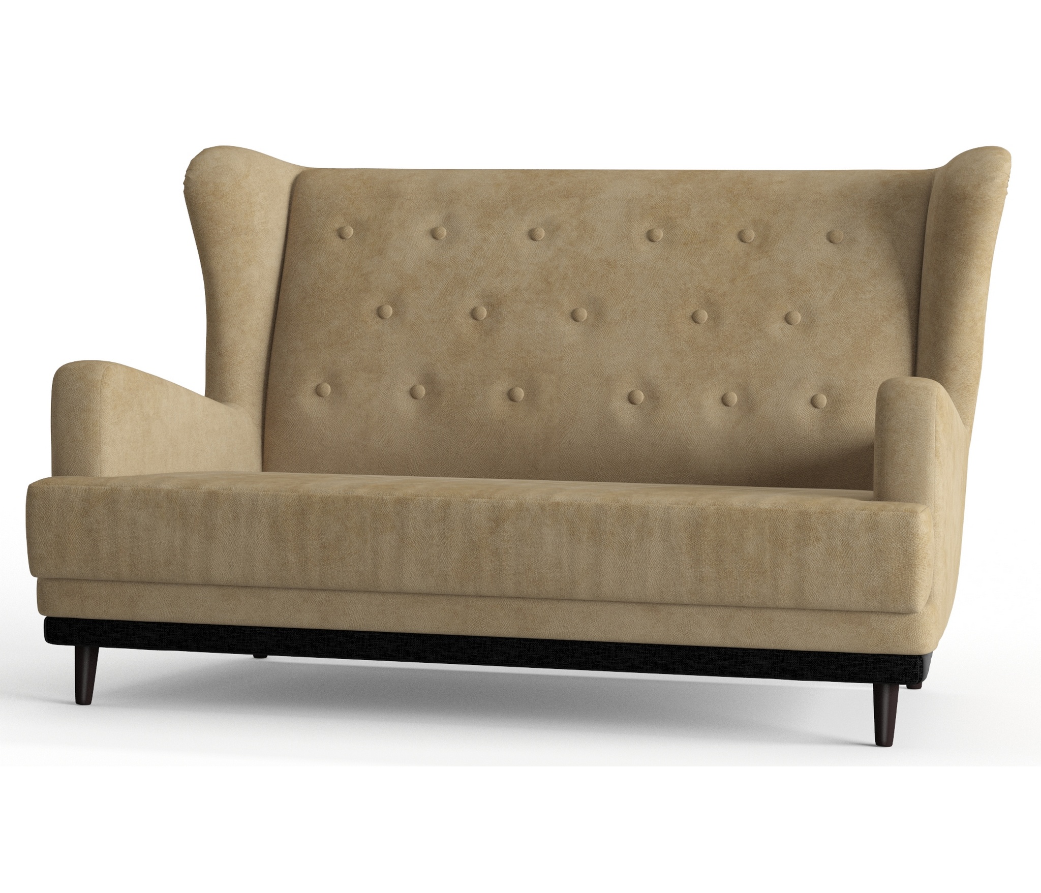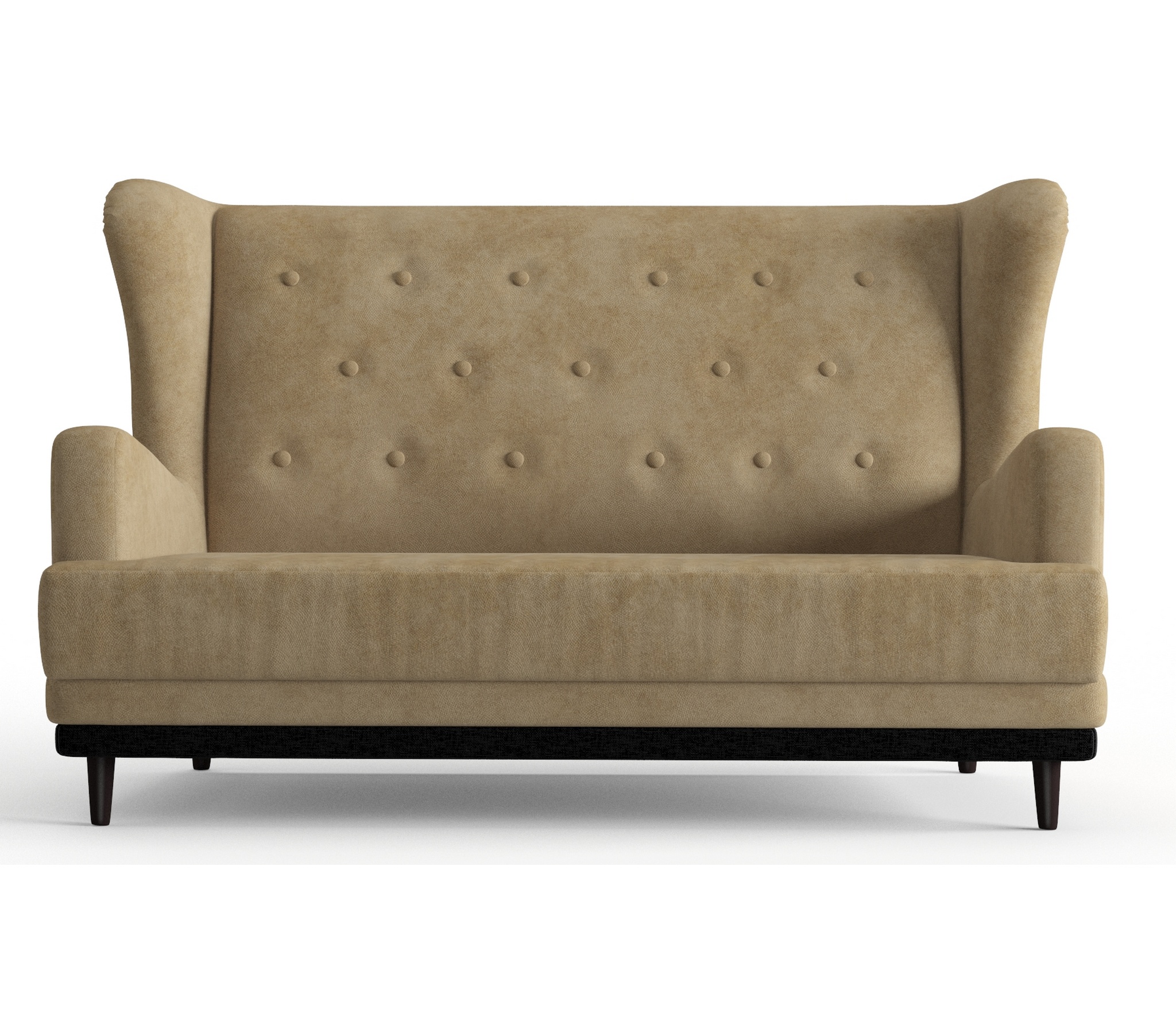 Практичный диван Барон обладает особенной конструкцией и компактными размерами ширина 145 см высота 92 см глубина 90 см . Его главное отличие ""уши""- расположенные по бокам спинки дивана, глубокое сиденье 60 см для удобства, высокая спинка, устойчивые деревянные ножки и прочный каркас. Красиво сдекорированная пуговками спинка дивана задаёт эстетику и элегантность. Диван Барон с пружинной змейкой надолго сохраняет свою форму и не продавливается, а ППУ (пенополиуретан) добавляет мягкости и комфорта. Пенополиуретан практичен и способен прослужить в течение многих лет, кроме того, такой материал безопасен и экологичен. ППУ пропускает воздух, поэтому гигиеничен. На диван легко сесть, и с комфортом проводить время.