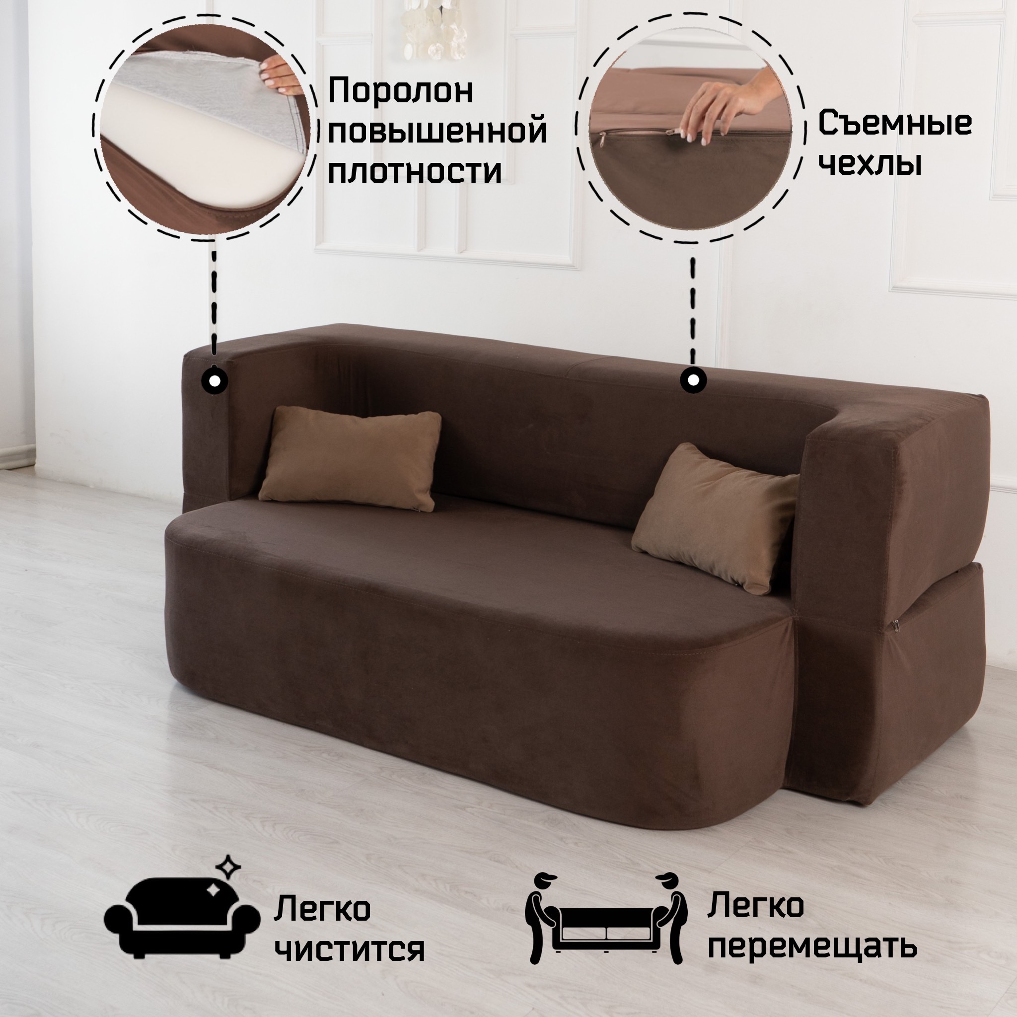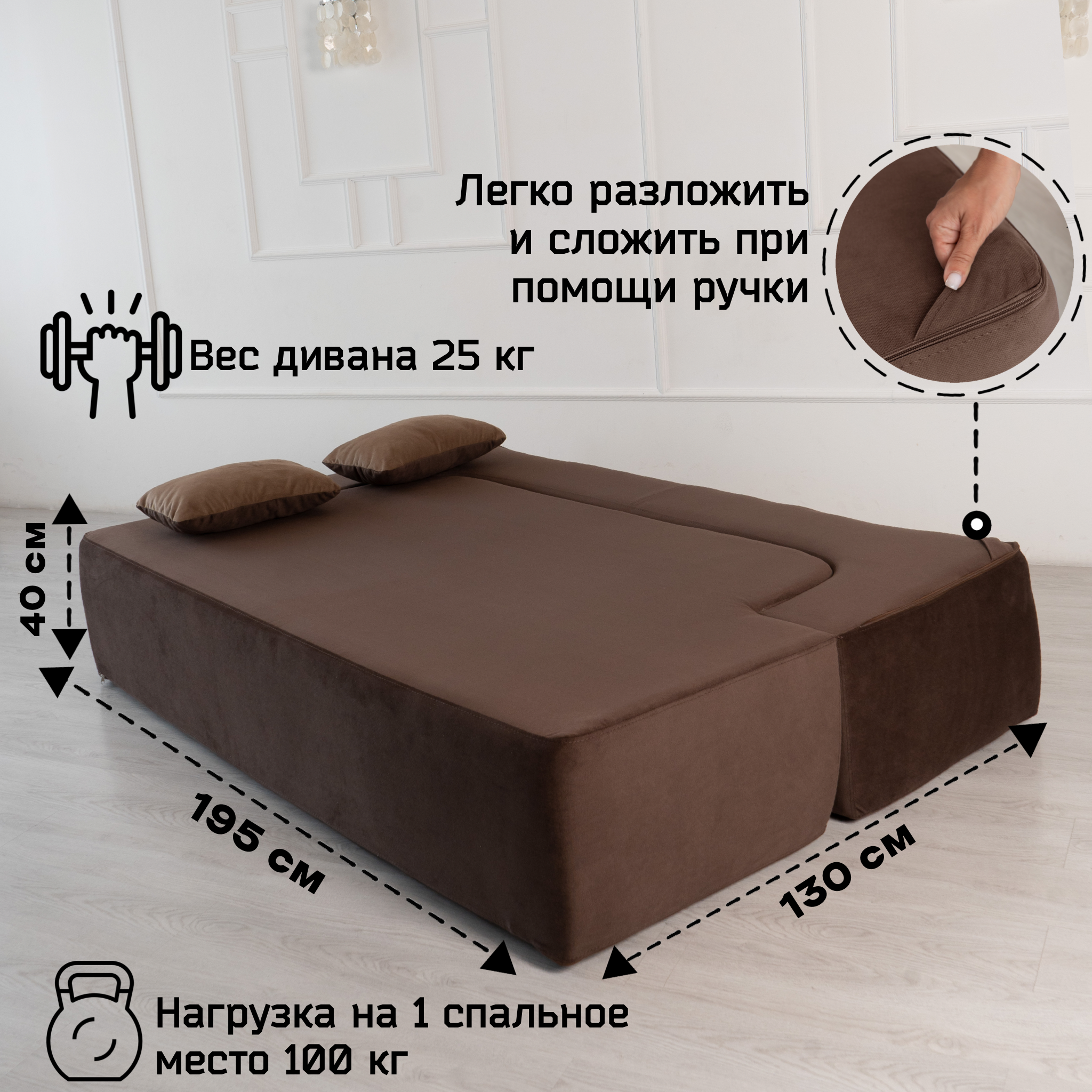 Отзывы о Столплит Бескаркасный диван-кровать "Дадли ЛАЙТ" 1950*1050мм. велюр Шоколадный