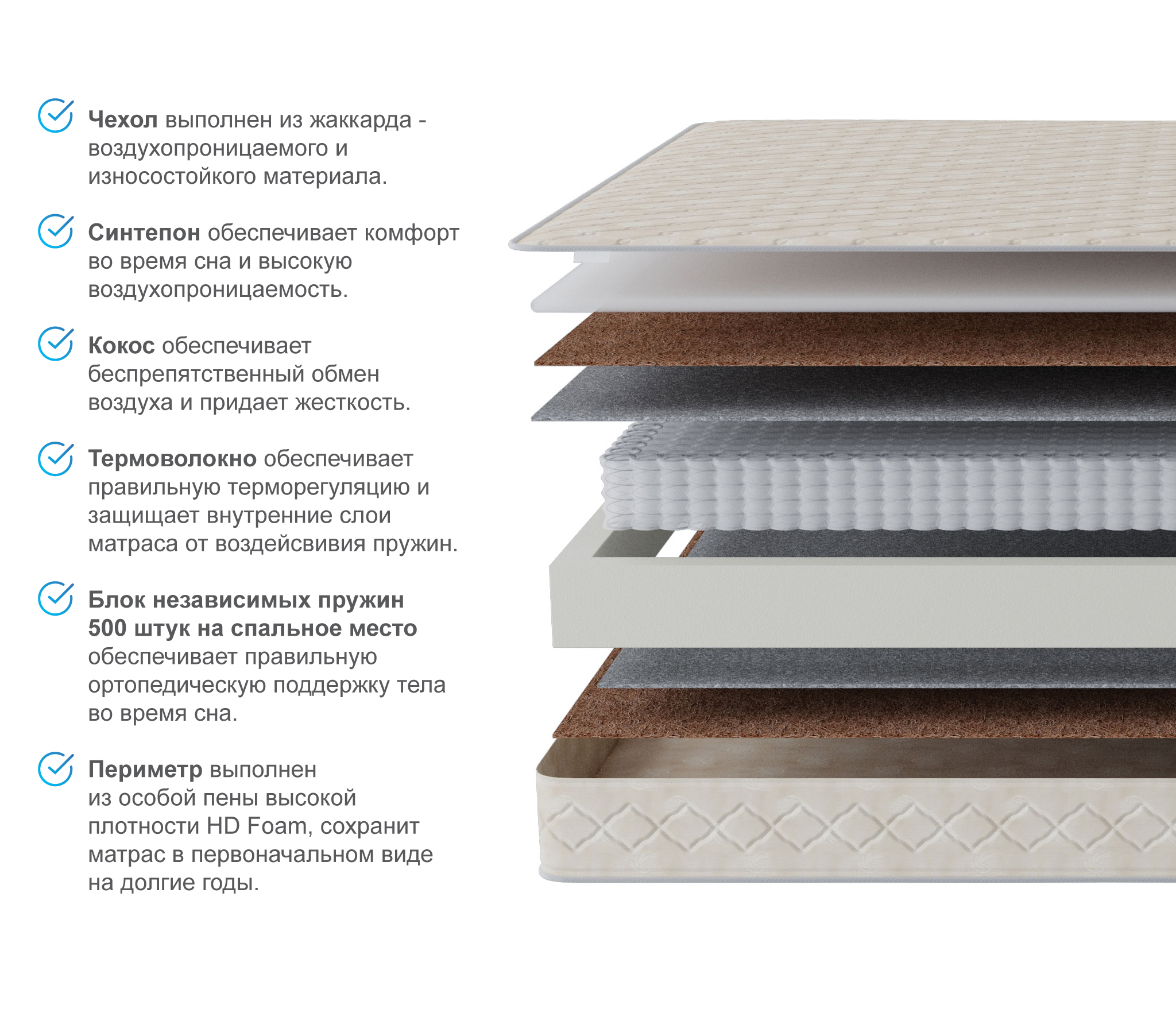 Пружинный матрас Престиж-Монпелье 1800*1900 поможет вам быстро оказаться в объятиях Морфея. Наполнитель из кокосовой койры обеспечивает оптимальный уровень жесткости, благодаря чему тело получает нужную поддержку, а мышцы расслабляются. Спящий испытывает лишь безмятежный покой, пока организм естественным образом восстанавливает запас энергии.