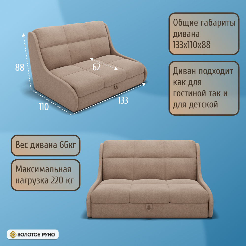 Отзывы о Столплит Прямой диван Куба на 1200 ППУ, велюр бежевый/коричневый
