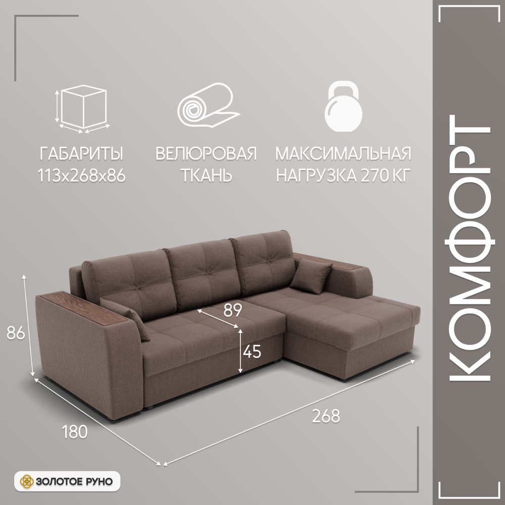 Отзывы о Столплит Угловой диван Сенатор-3 ППУ, велюр Коричневый
