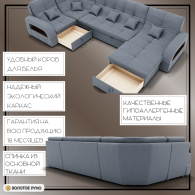 Отзывы о Столплит П-образный диван Майами-4 ППУ, велюр Серо-голубой