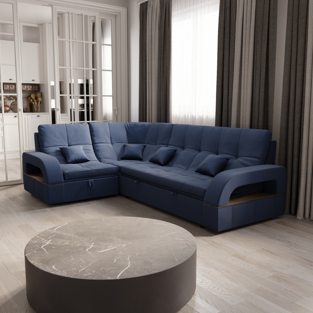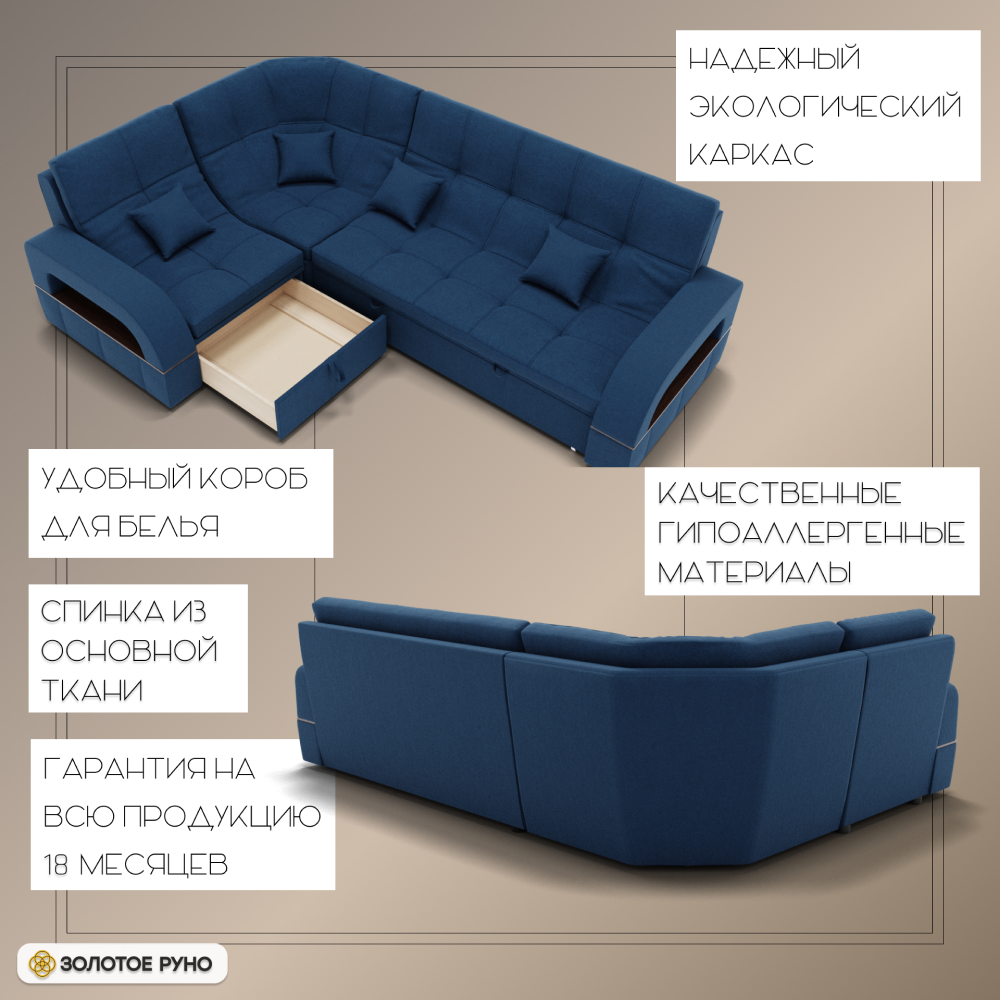 Отзывы о Столплит Угловой диван Майами-3 ППУ, велюр Синий