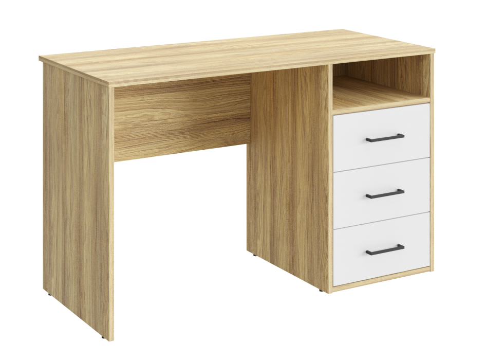 Письменный стол Оскар ОС-20 идеально подойдет для создания рабочего места в небольшом помещении. Благодаря своей универсальности стол с ящиками и нишей может использоваться как компьютерный, офисный, письменный или стол для ноутбука. С его помощью вы сможете организовать порядок на своем рабочем месте. Стол гармонично впишется в любой стиль интерьера. Современный и простой дизайн делает его идеальным для использования дома и в офисе. Свес крышки в 30 мм обеспечит прилегание к стене с любым плинтусом.