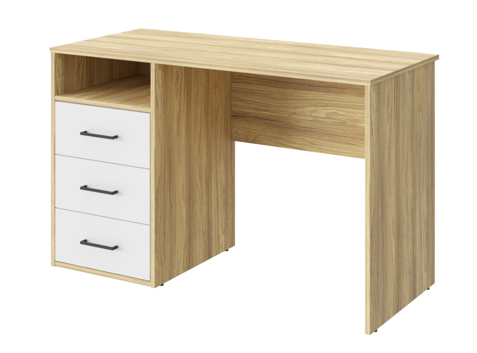 Письменный стол Оскар ОС-21 идеально подойдет для создания рабочего места в небольшом помещении. Благодаря своей универсальности стол с ящиками и нишей может использоваться как компьютерный, офисный, письменный или стол для ноутбука. С его помощью вы сможете организовать порядок на своем рабочем месте. Стол гармонично впишется в любой стиль интерьера. Современный и простой дизайн делает его идеальным для использования дома и в офисе. Свес крышки в 30 мм обеспечит прилегание к стене с любым плинтусом. Фурнитура: телескопические направляющие полного выдвижения без доводчиков, ручки пластик. Регулируемые опоры позволяют компенсировать возможные неровности пола.