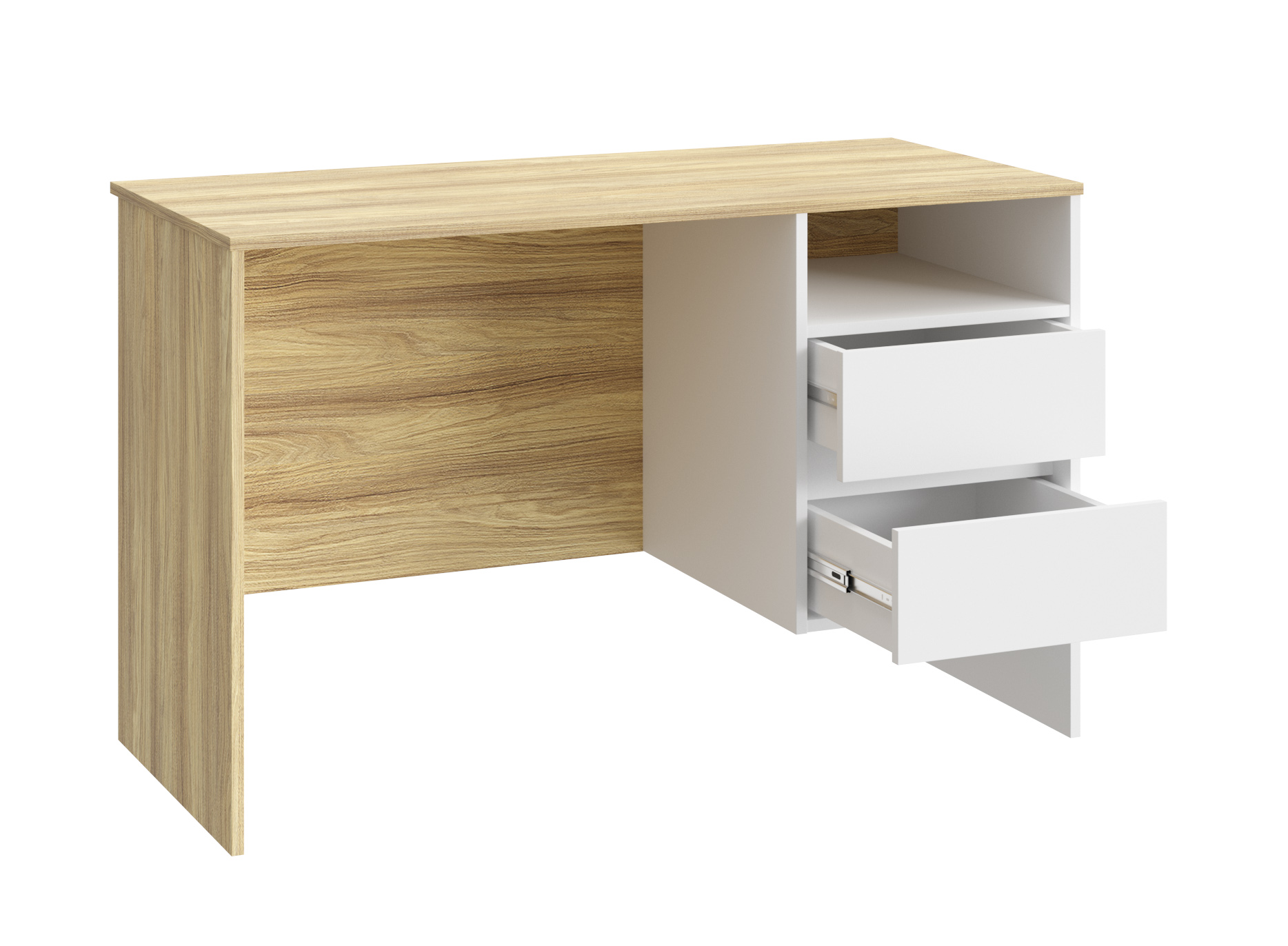 Письменный стол Оскар ОС-23 идеально подойдет для создания рабочего места в небольшом помещении. Благодаря своей универсальности стол с ящиками и нишей может использоваться как компьютерный, офисный, письменный или стол для ноутбука. С его помощью вы сможете организовать порядок на своем рабочем месте. Стол гармонично впишется в любой стиль интерьера. Современный и простой дизайн делает его идеальным для использования дома и в офисе. Свес крышки в 30 мм обеспечит прилегание к стене с любым плинтусом. Фурнитура: телескопические направляющие полного выдвижения без доводчиков, ручки пластик. Регулируемые опоры позволяют компенсировать возможные неровности пола.