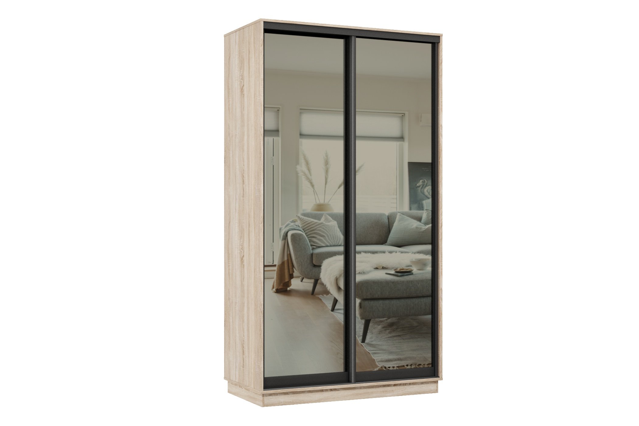 Шкаф-купе Премьер МИНИ 03 (01ЗГ;01ЗГ) фасады зеркало графит/двухдверный/Профиль чёрный муар (Дуб сонома) Код I0000373672