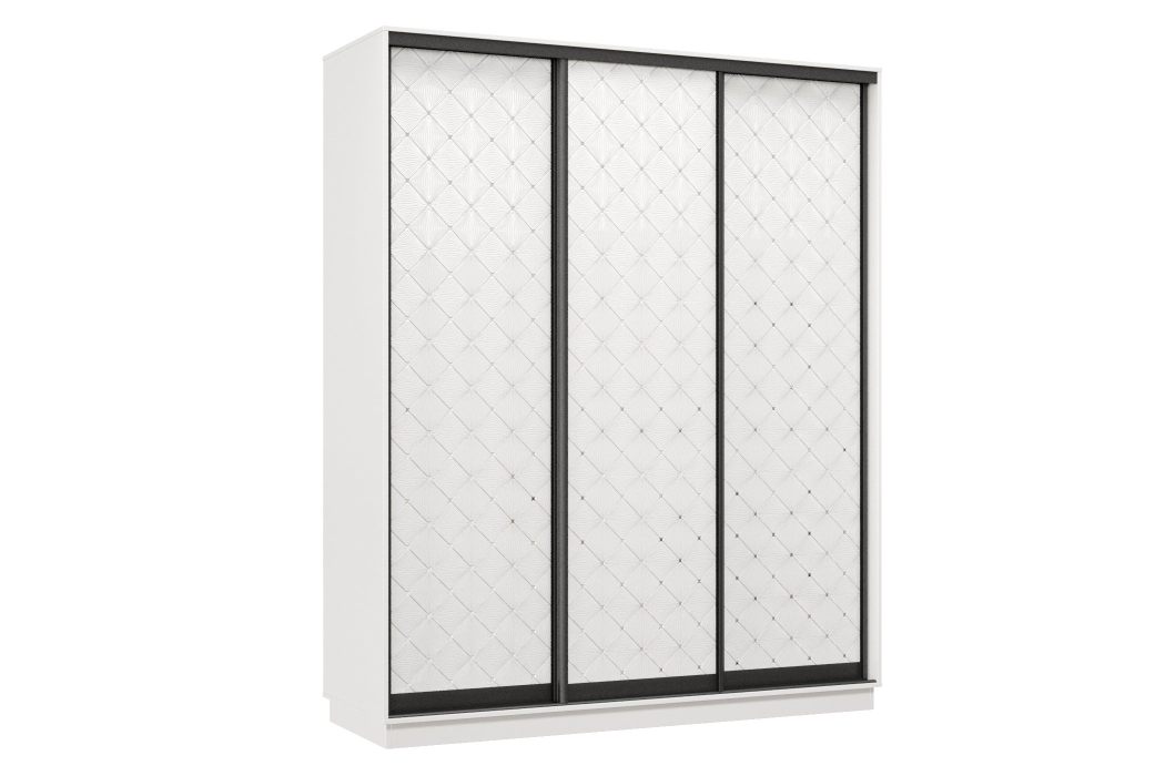 Шкаф-купе Премьер 21 (01РБ;01РБ;01РБ) фасады ромб белый/трёхдверный/Профиль чёрный муар Код I0000374137