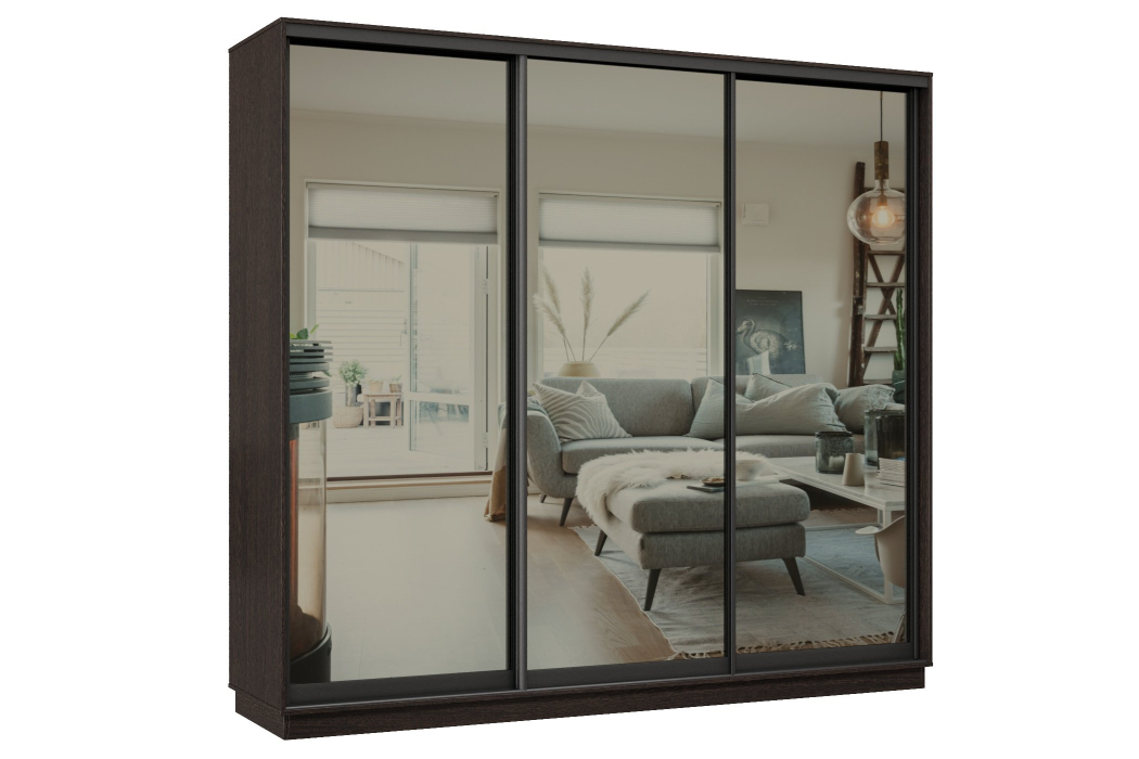 Отзывы о Столплит Шкаф-купе Премьер 36 (01ЗГ;01ЗГ;01ЗГ) фасады зеркало графит/трёхдверный/Профиль чёрный муар Венге